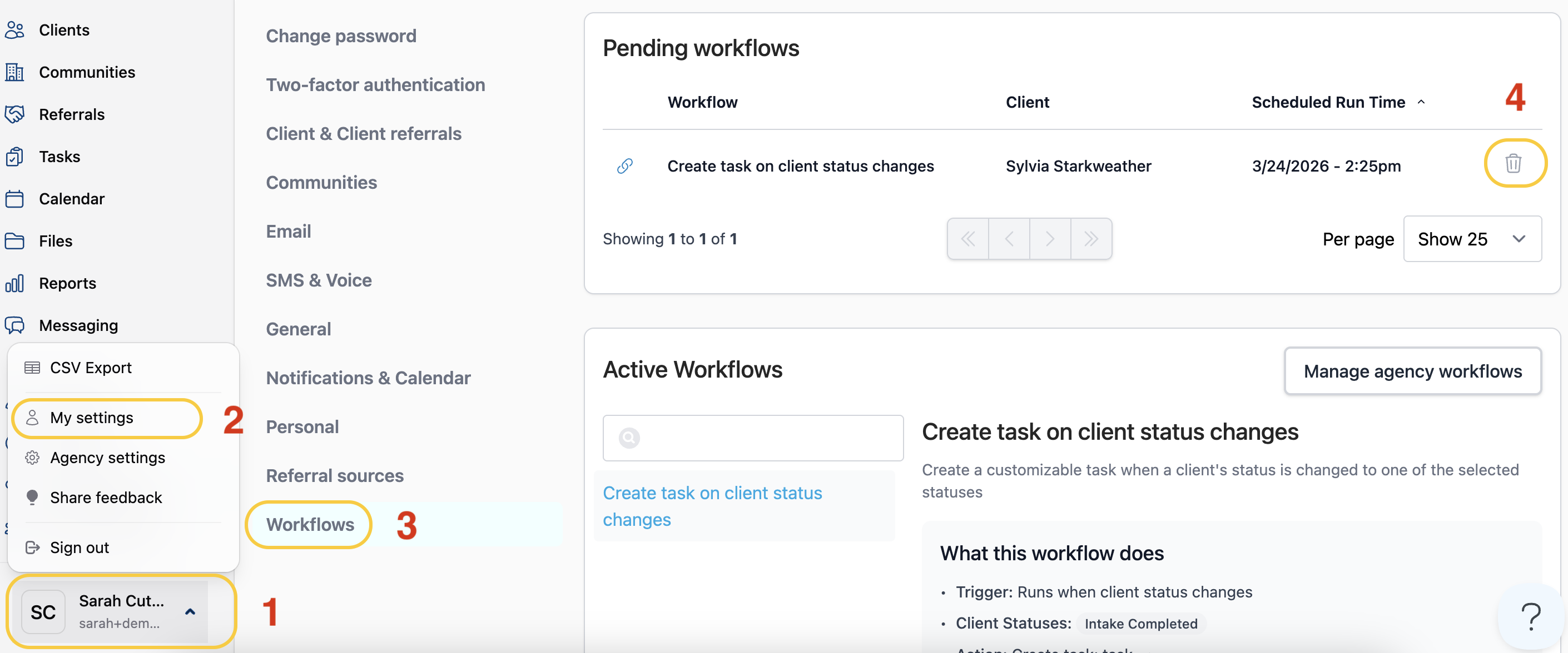 - Select the trashcan 🗑️ icon next to the workflow you would like to cancel