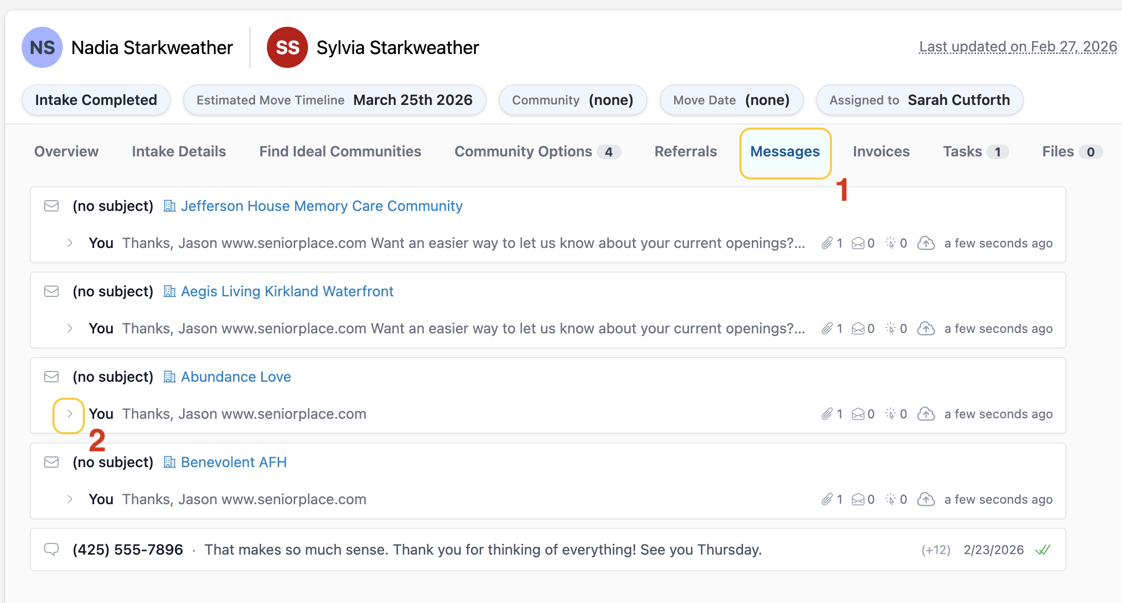 - Click on the arrow icon to view that email thread
