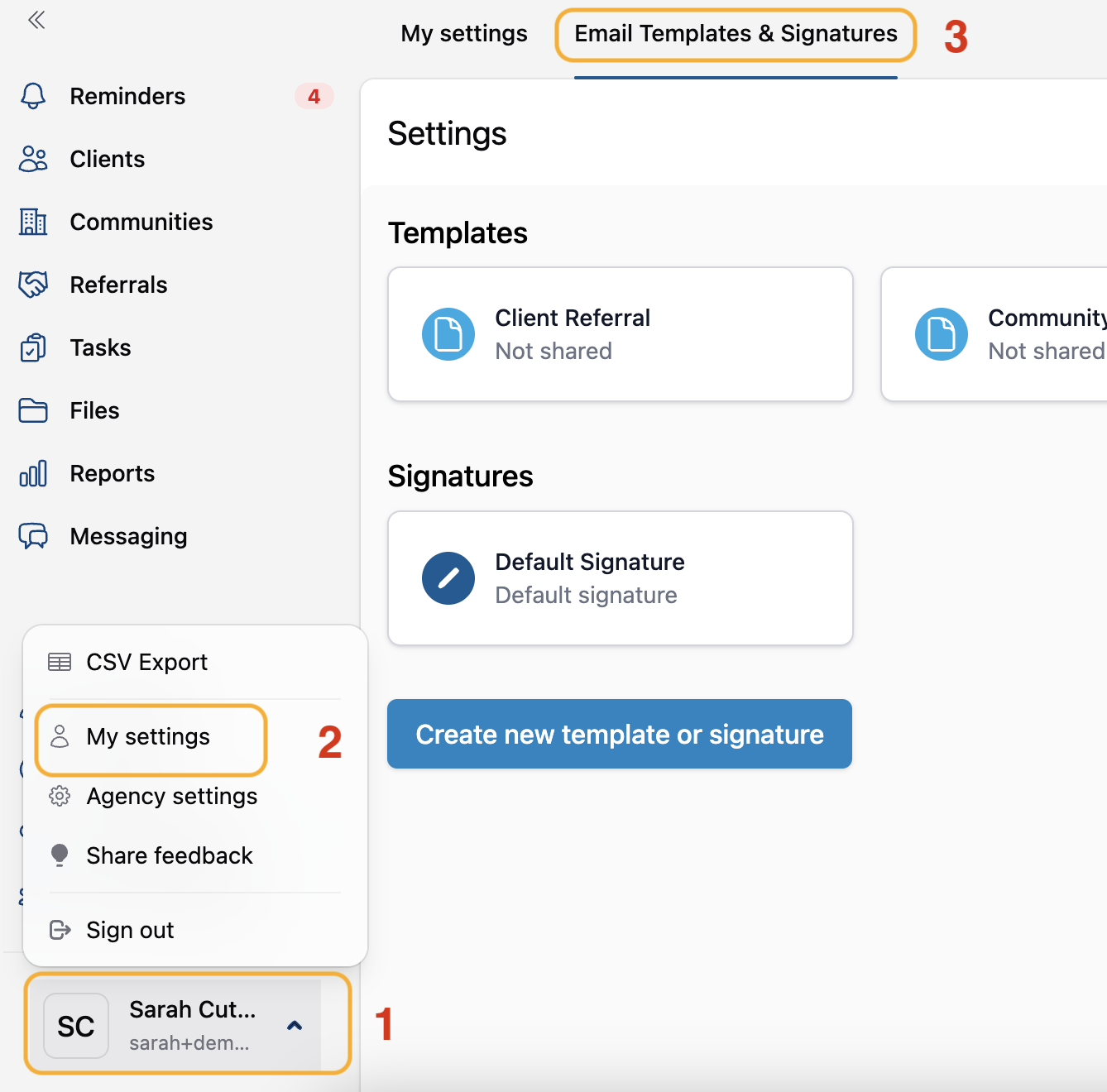 1) Navigate to Email Templates & Signatures Setting