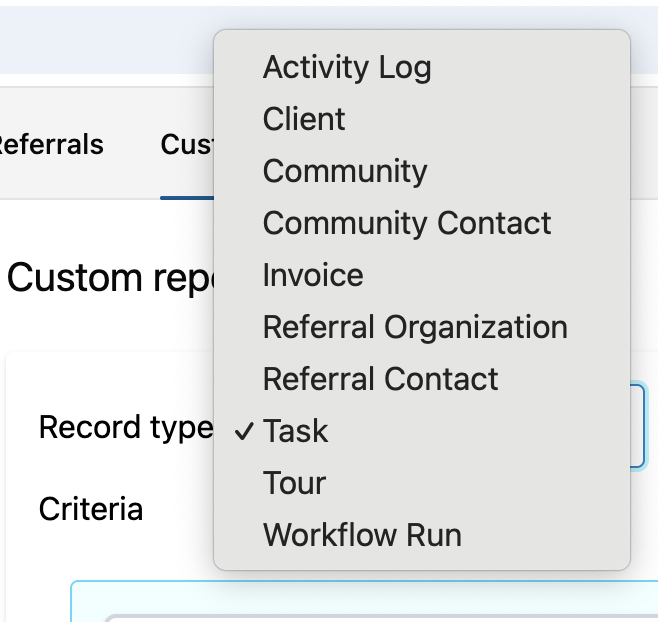 Many customers love tracking their progress and tasks! For this reason, we have added Task as an option in creating a custom report.