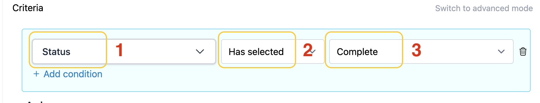 - Second box to Has selected