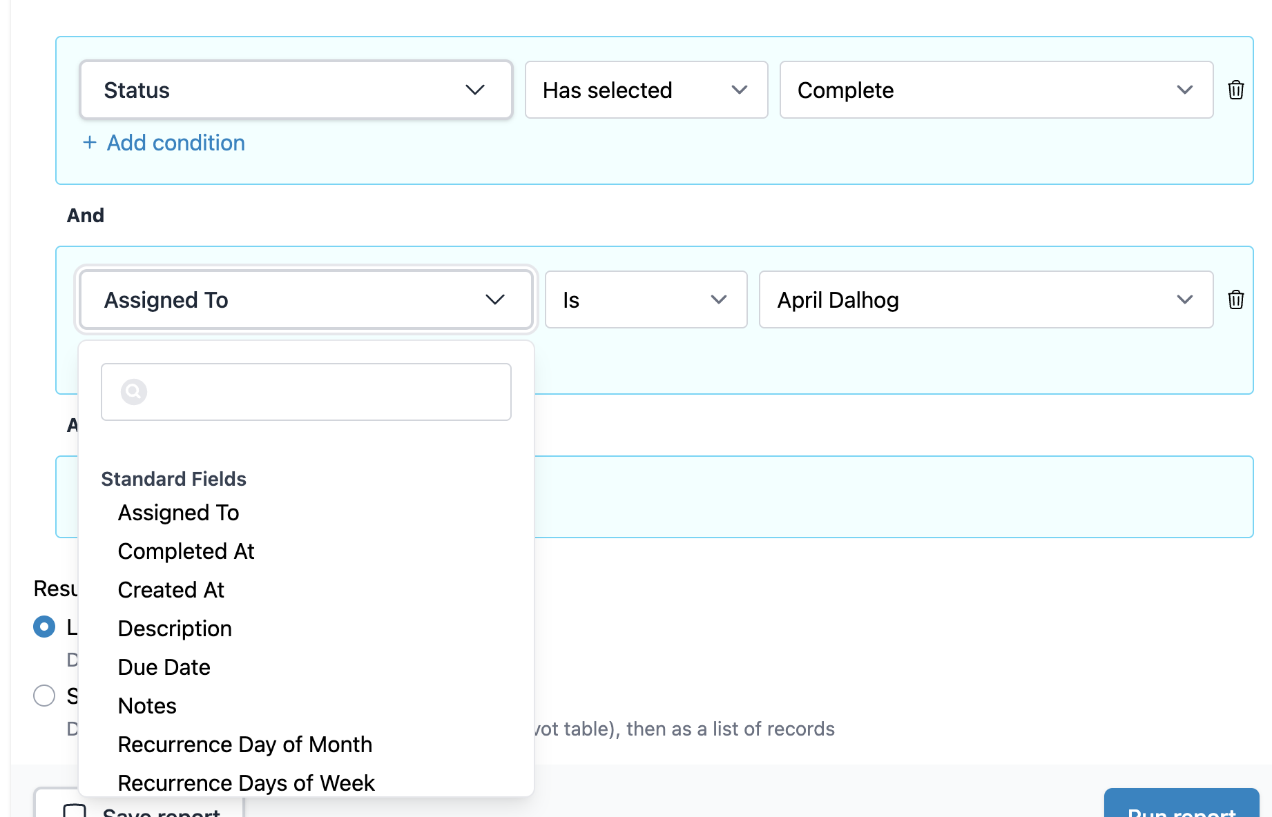 4) Once you're satisfied with the conditions you set, click the "Run report" button.