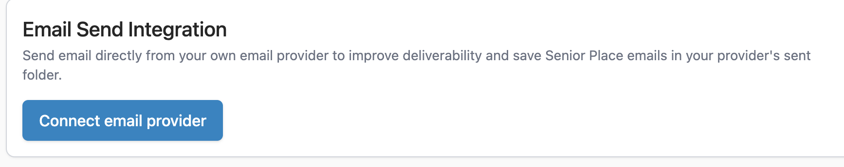 SMTP is a user-specific setting and requires each user to connect their email to their account. If you're not sure whether SMTP is the correct choice, please reach out to us at support@seniorplace.com.
