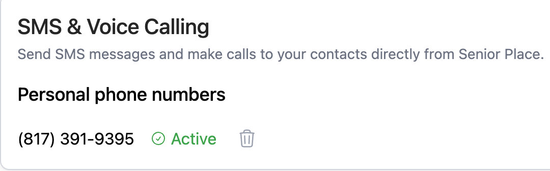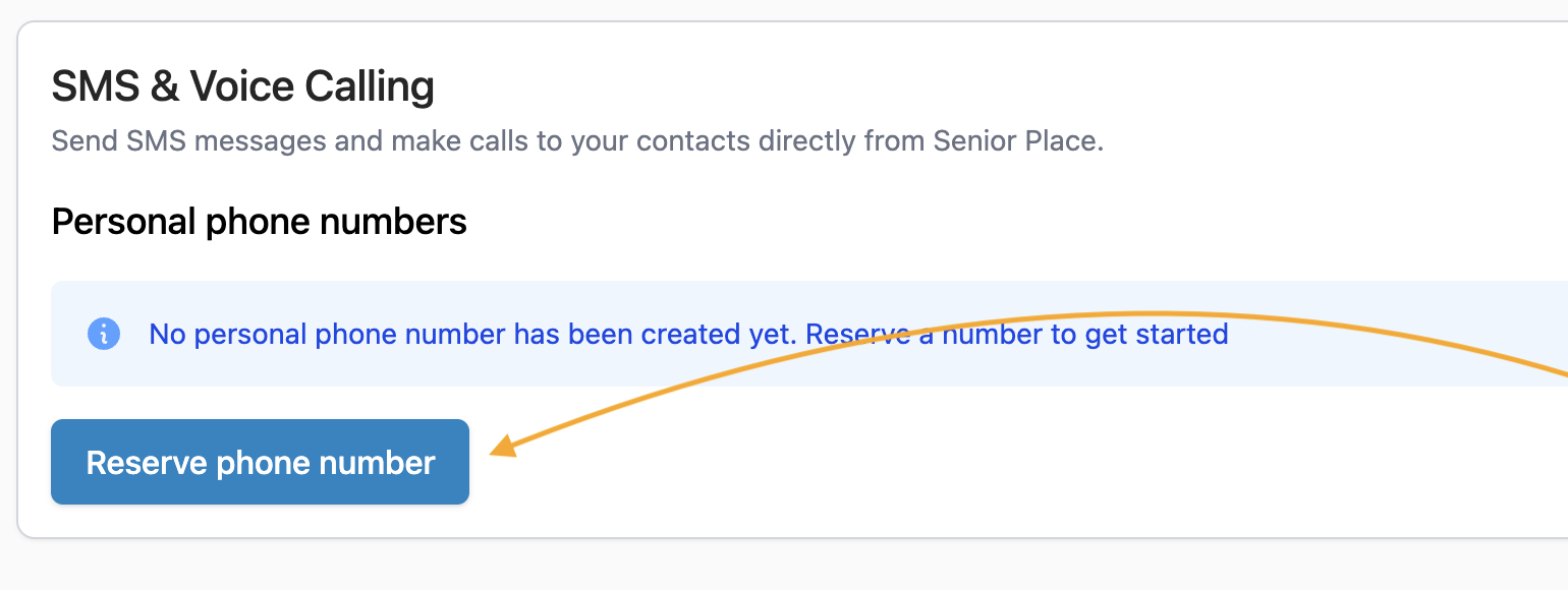 To text or call from Senior Place, you need to reserve a phone number, which is associated with your Senior Place account.