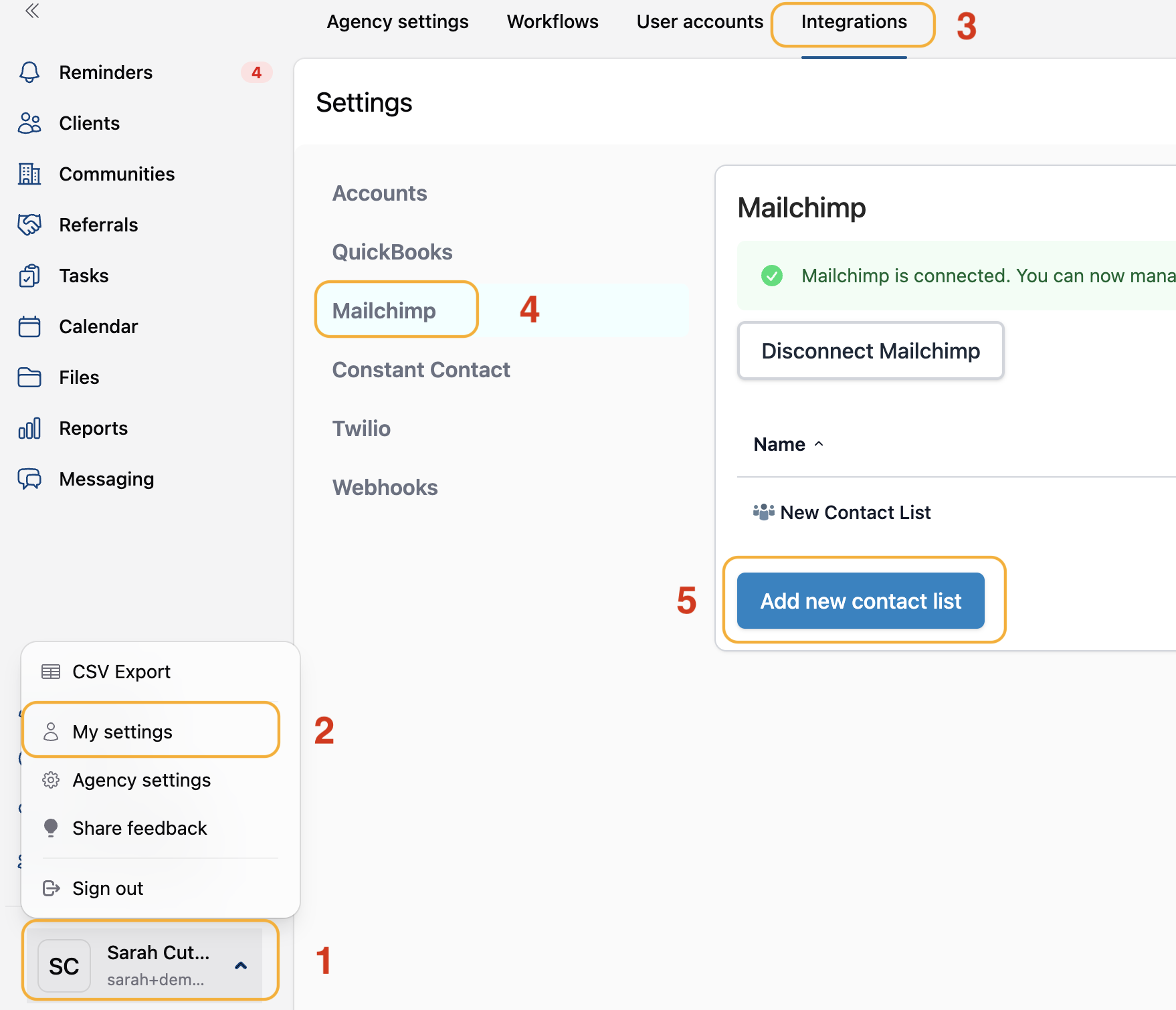 Note: Once a client contact list is saved, its tag cannot be edited. To create a list with a new Mailchimp tag, you will need to delete your existing list and recreate it with your preferred contact list title.