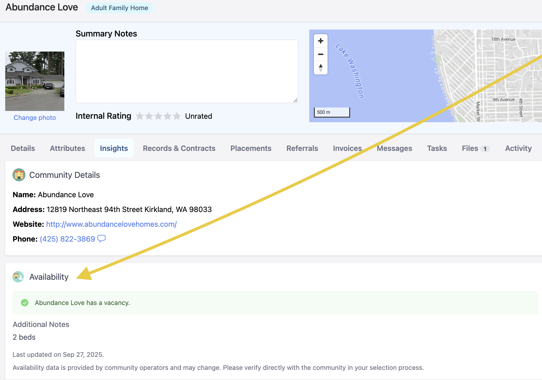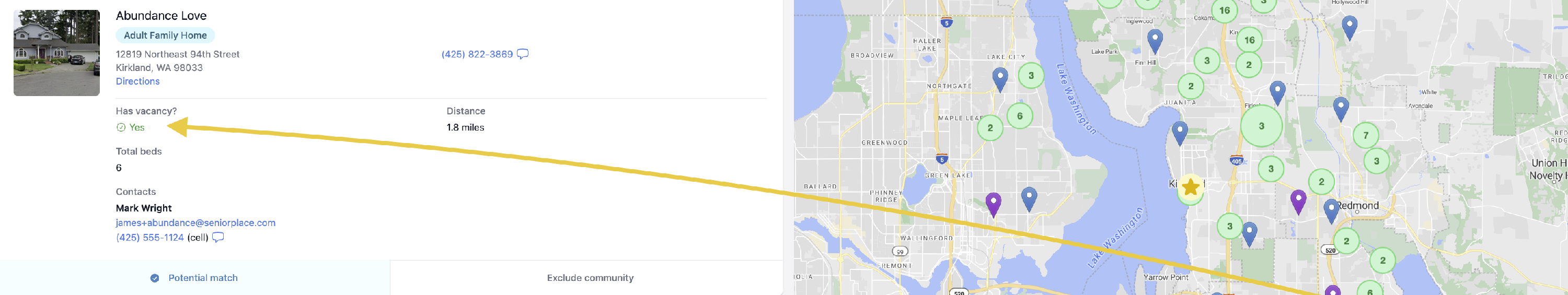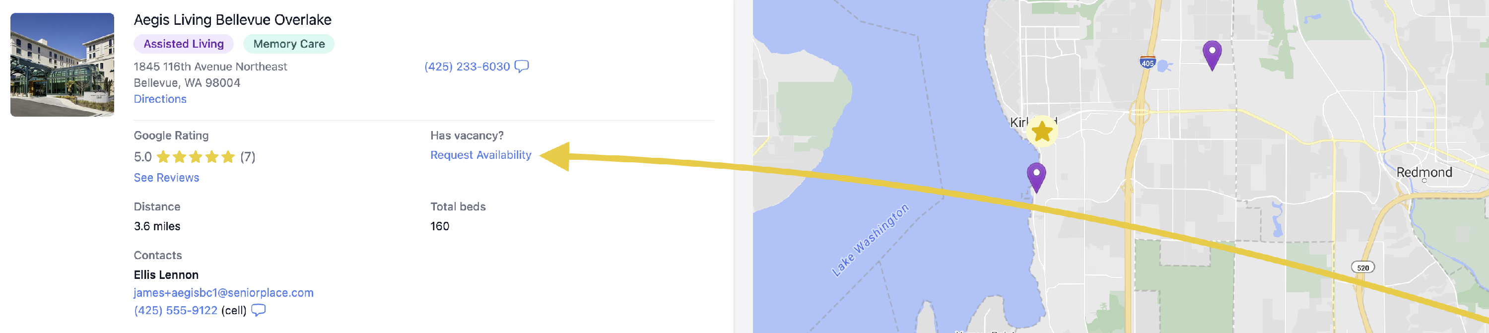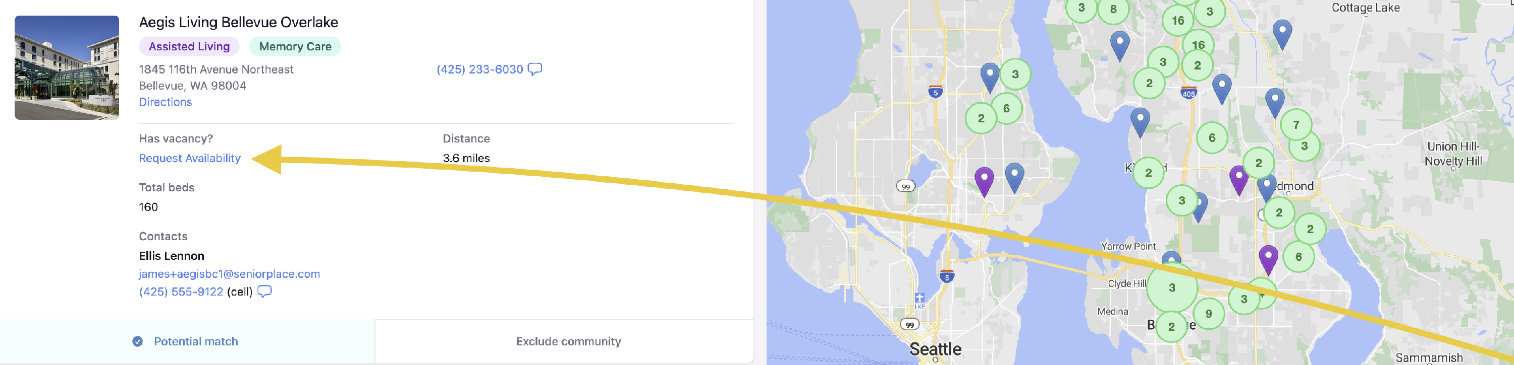 When finding ideal communities for your client, having up-to-date availability information can save you precious time and prevent you from needing to call or text facilities every time you're working with a new client.