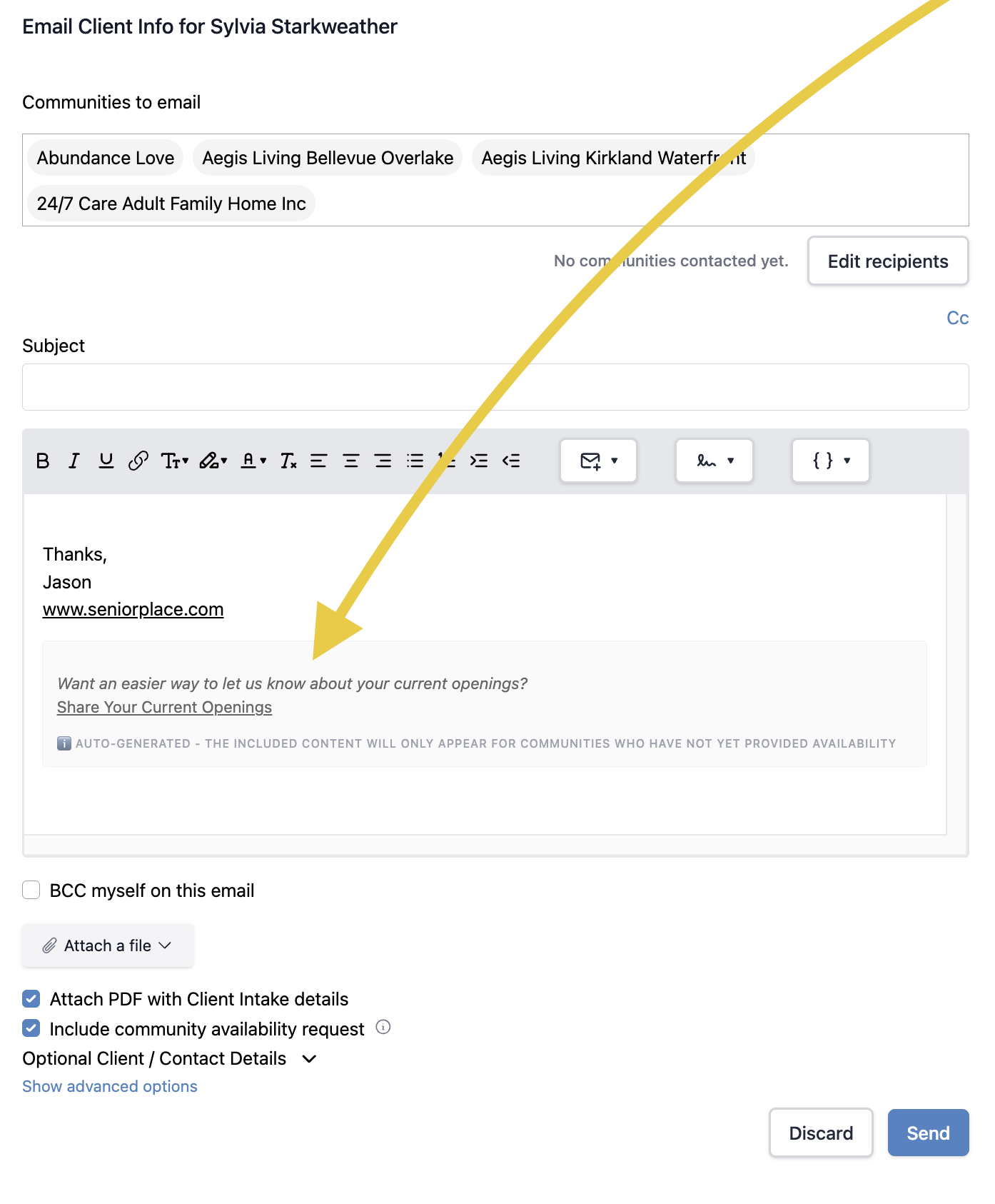 When sending out your client referral to the chosen communities, you can also opt into Requesting Availability automatically at the end of that referral email.