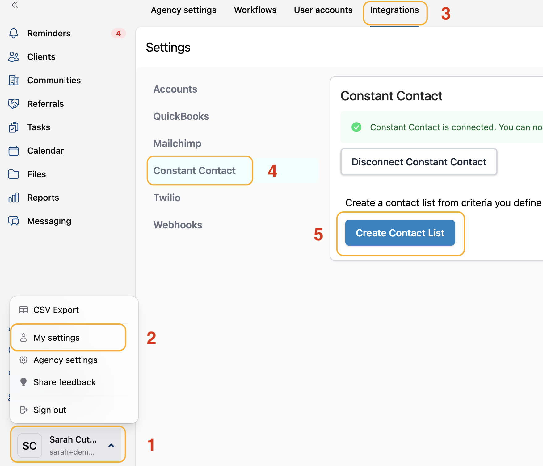 1) Connect Your Senior Place Account with Constant Contact