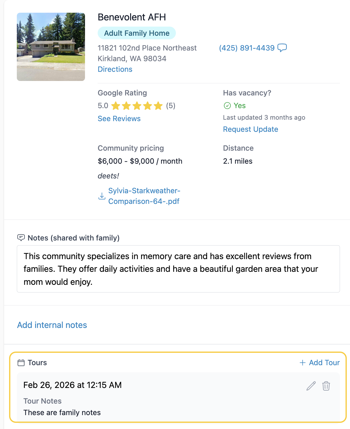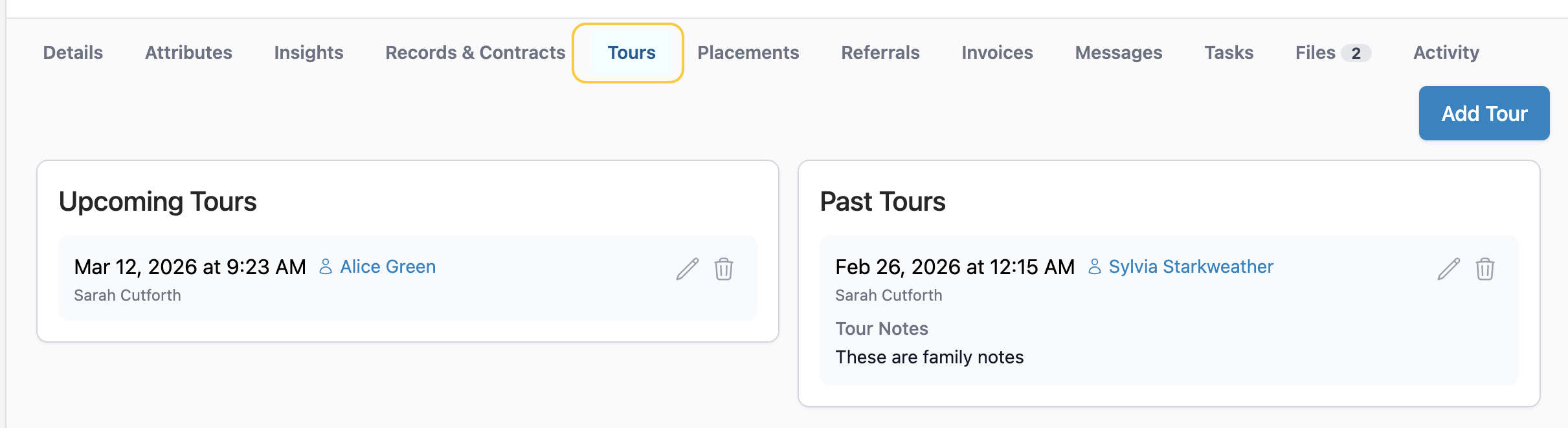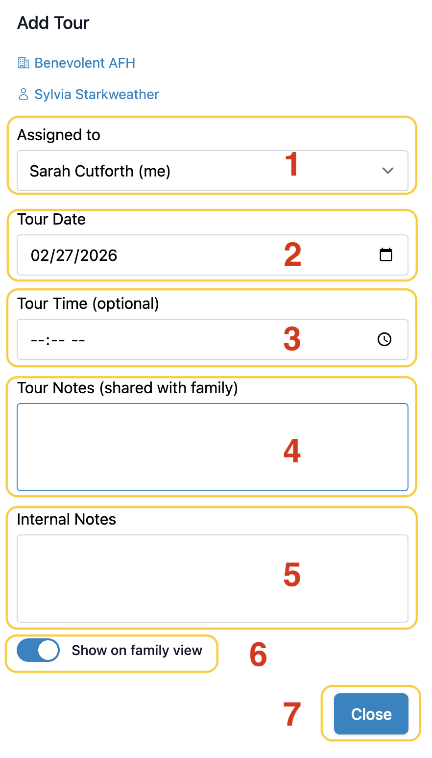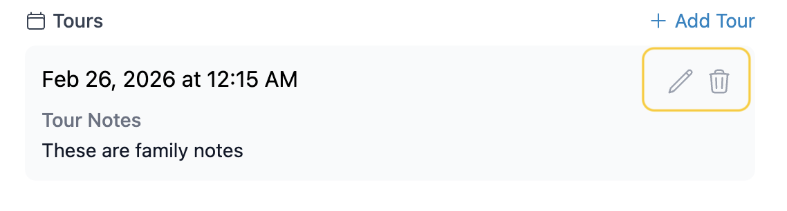 - Add Tour Notes. The family will be able to view these notes