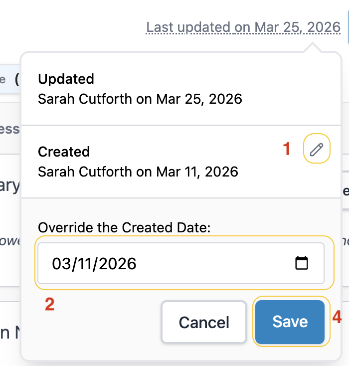 Thankfully, it's easy to change the Created Date in Senior Place to represent the most accurate date for your purposes. All you need to do is follow these steps: