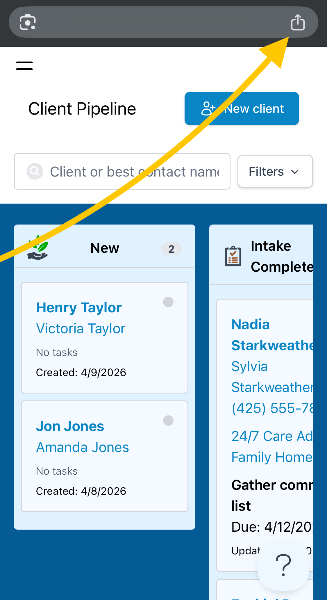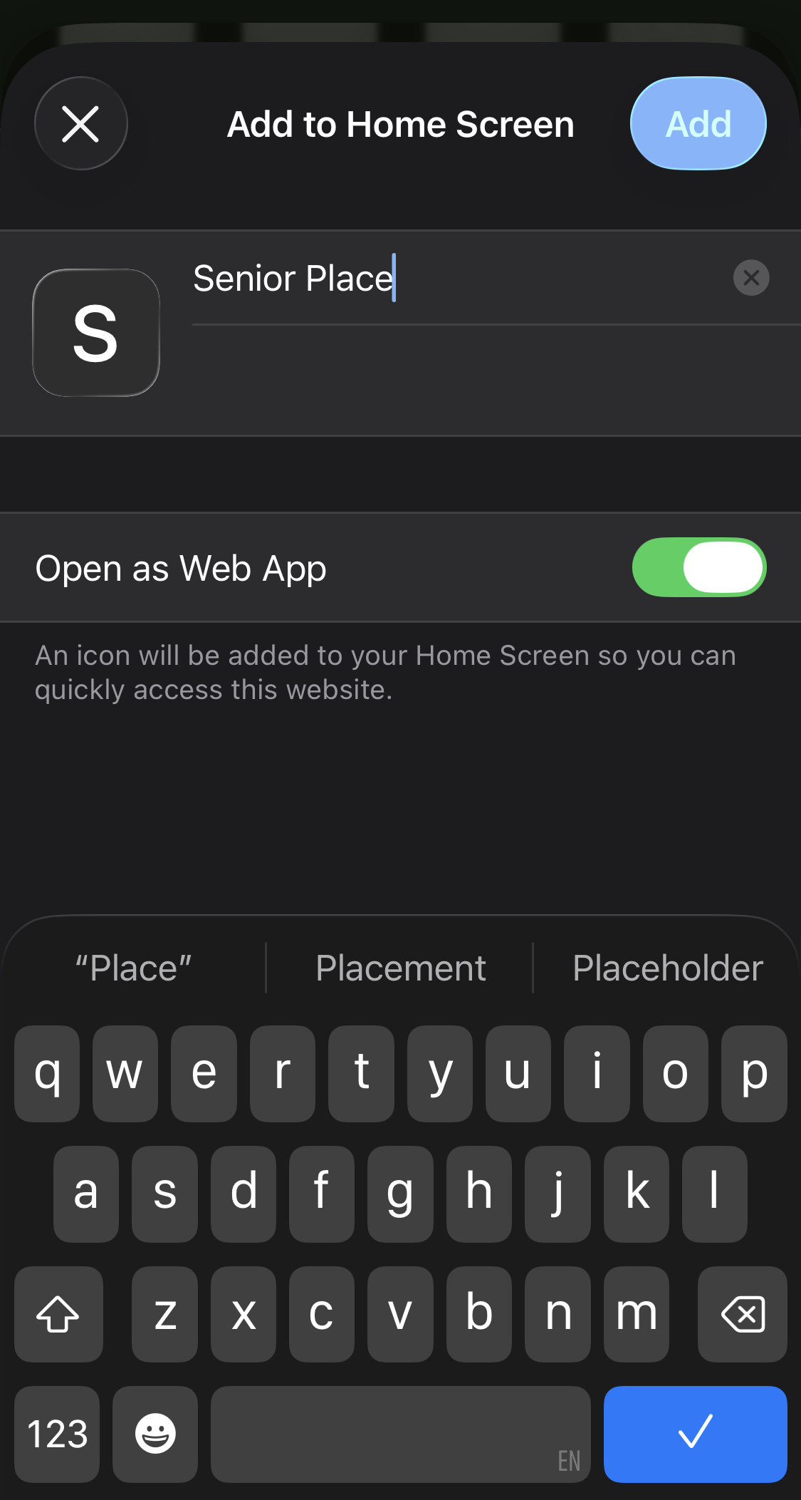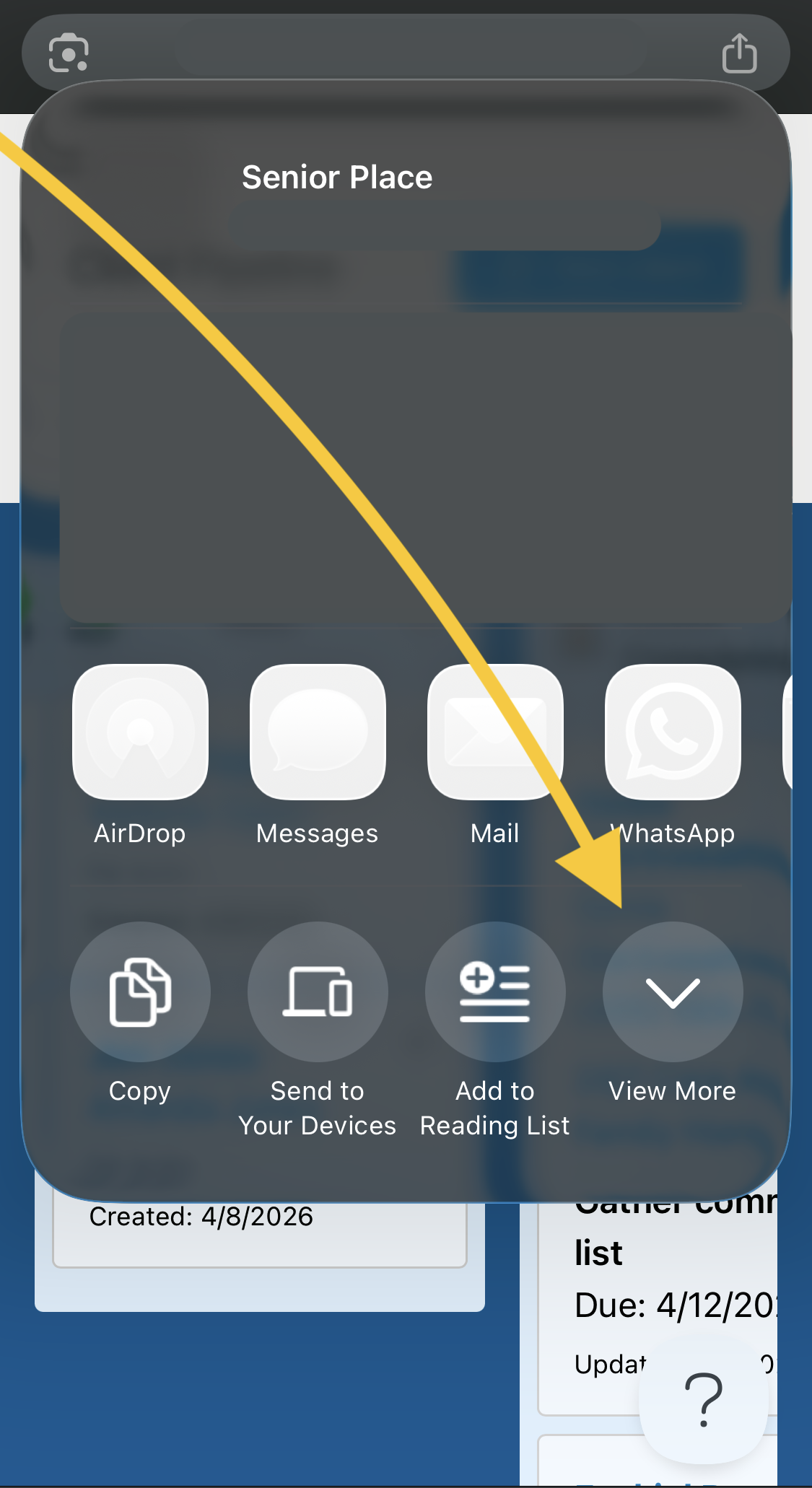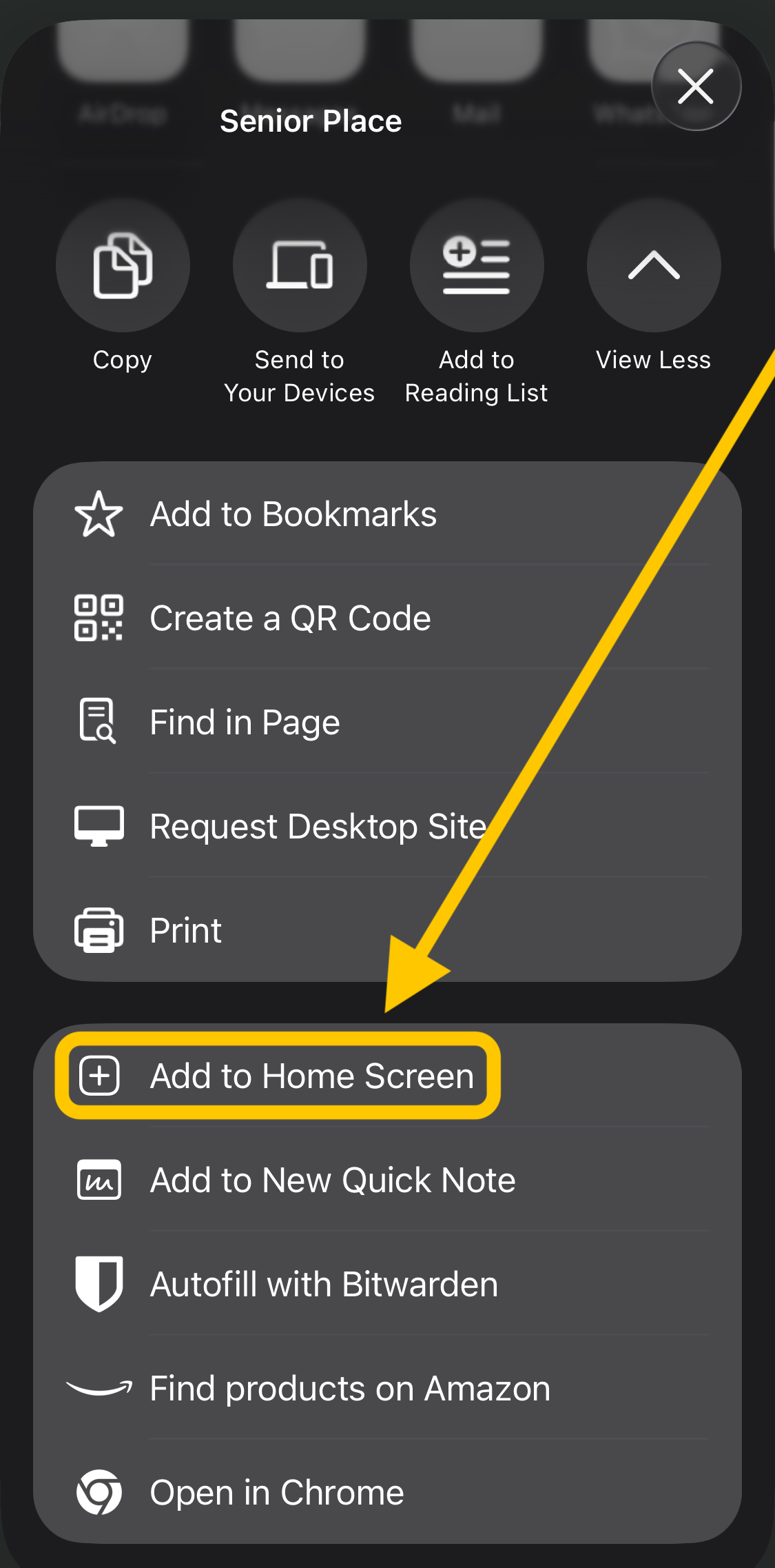 If you want to quickly access Senior Place from your iPhone or iPad (just like an app), follow these steps: