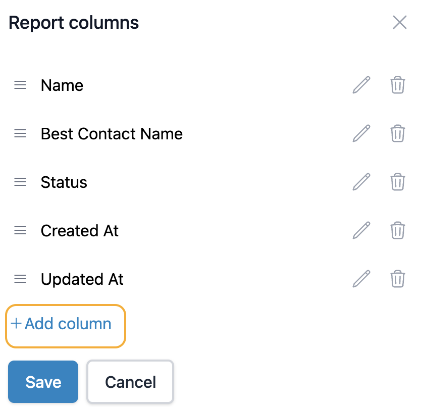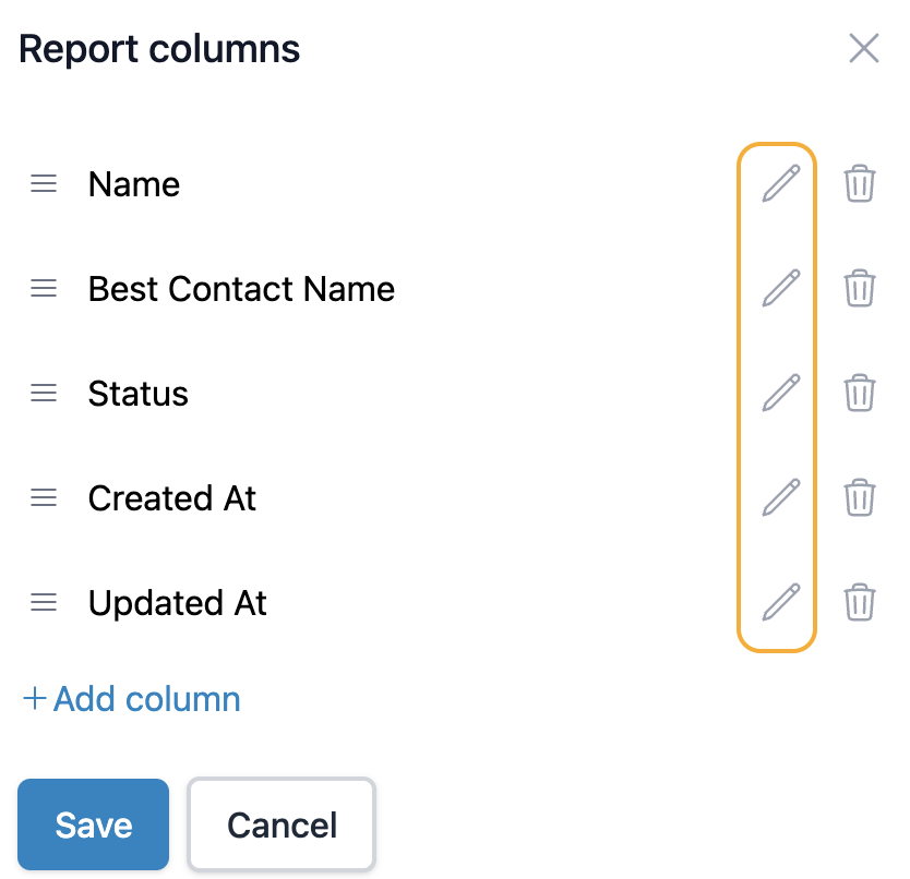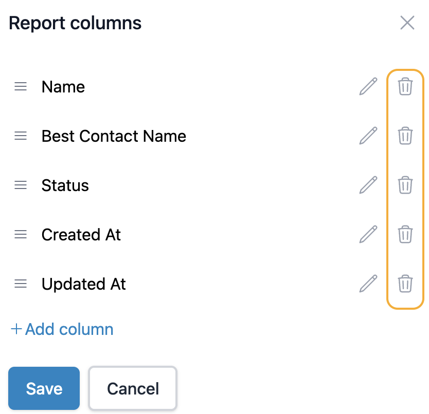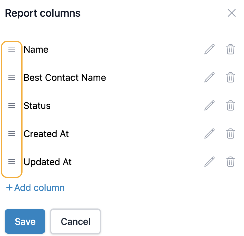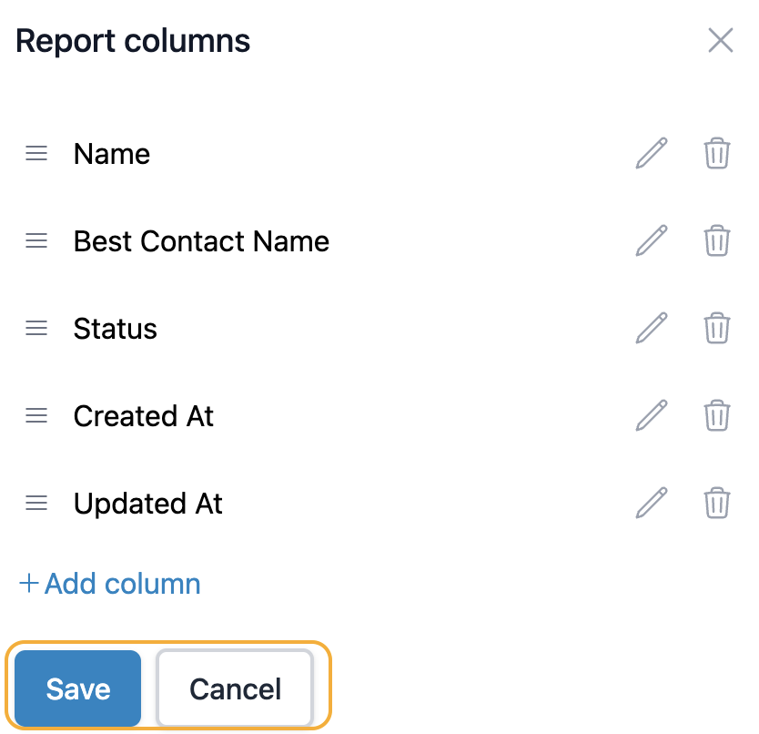 Once you're done, click Save to implement the changes you made. You can also click Cancel if you want to leave the report columns as they were.