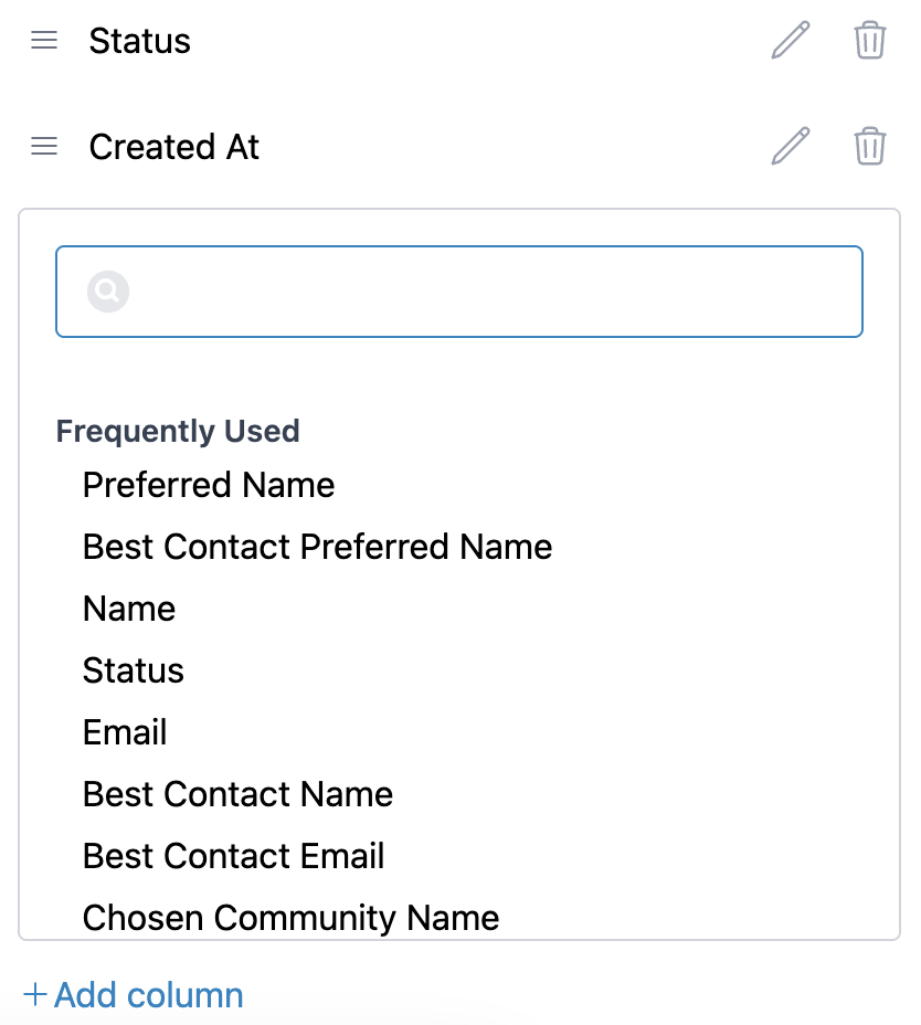 After clicking the pencil icon, you'll be able to choose from a searchable list of fields.