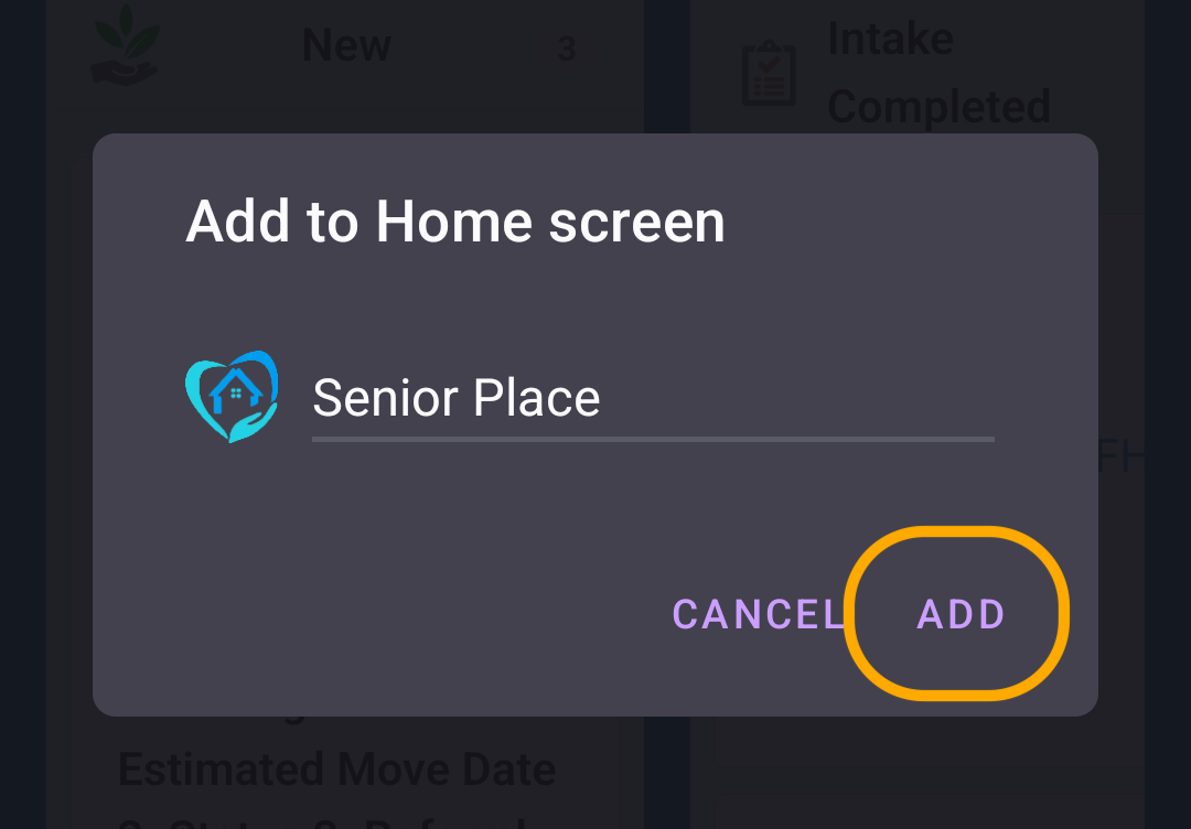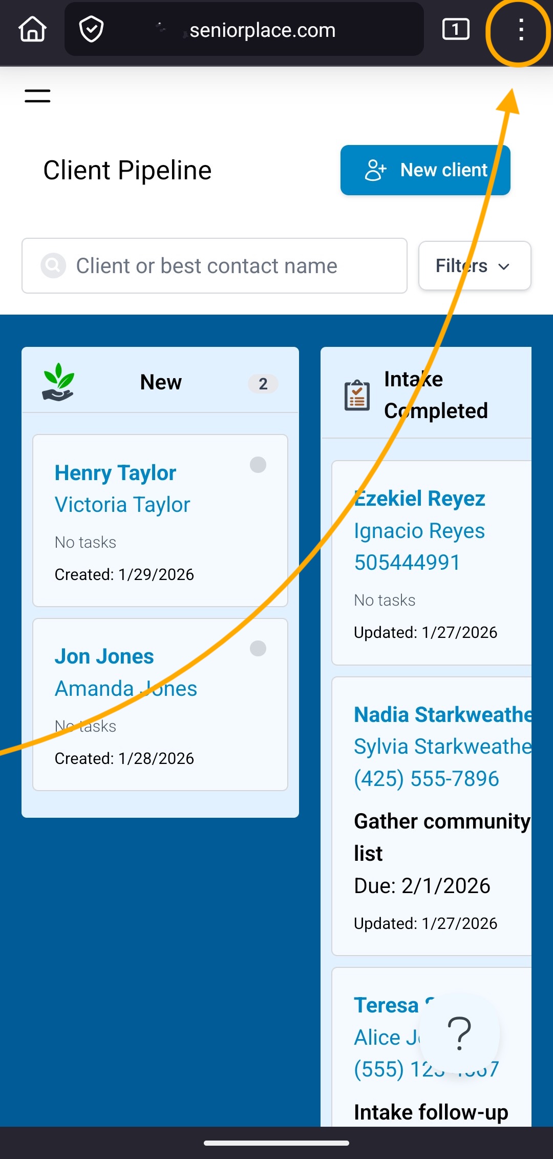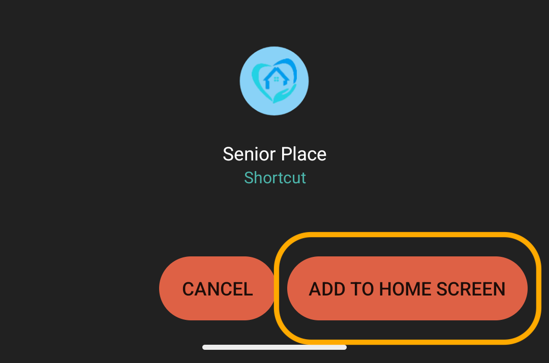 If you want to quickly access Senior Place from your Android device (just like an app), follow these steps: