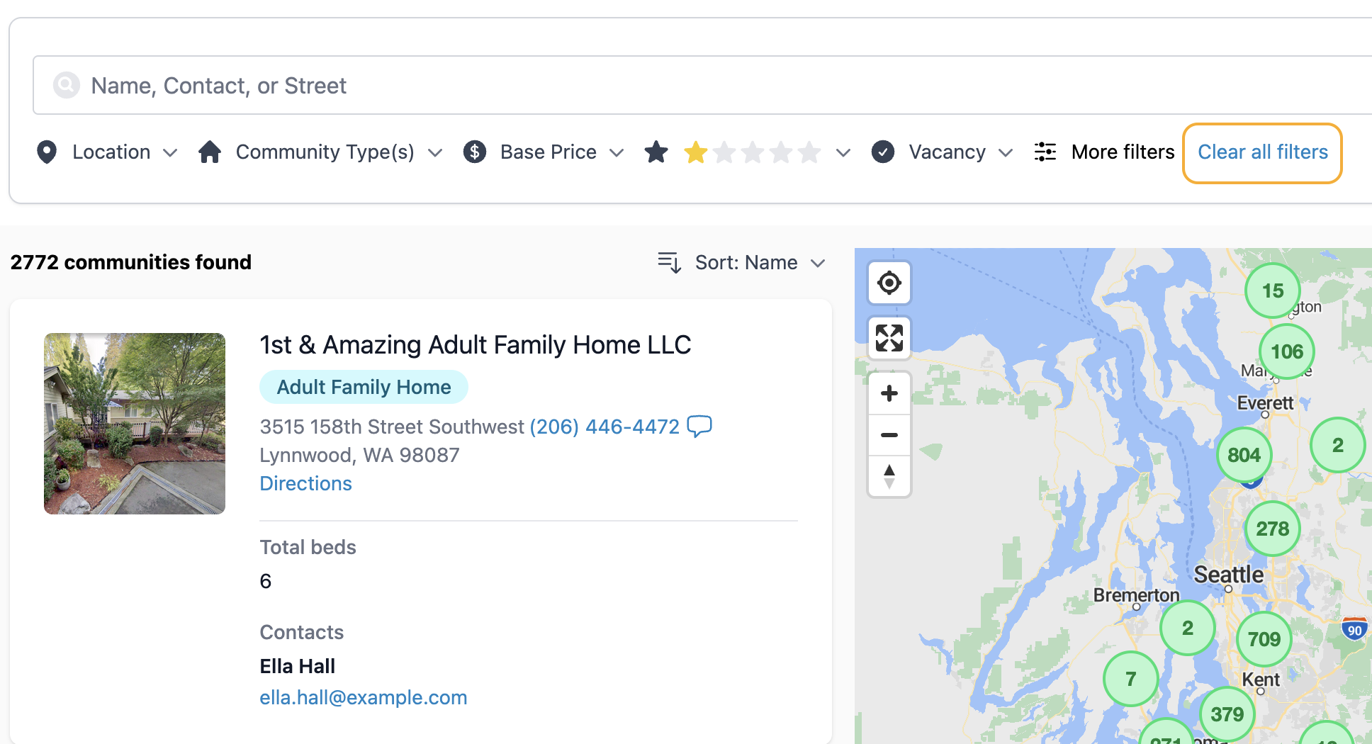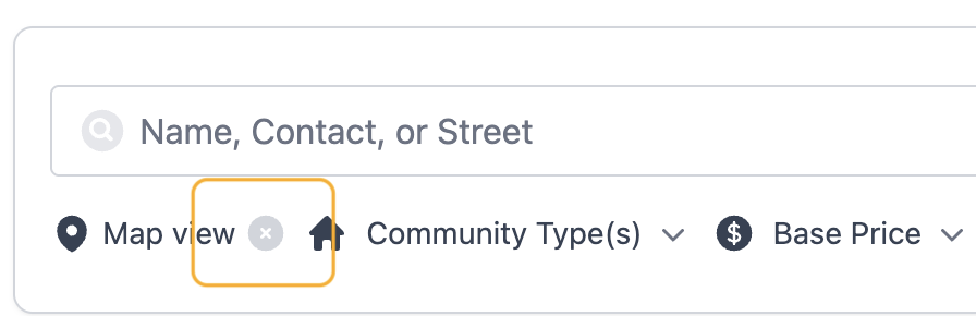 Once you've reset your filters and Map View, you can search for the community by name or address.