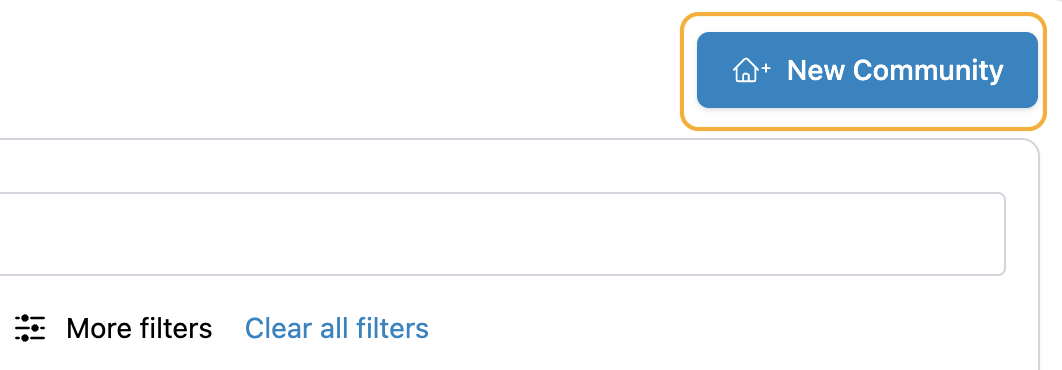 Although we regularly check licensing databases for new communities, sometimes communities aren't licensed or haven't been added yet. In this case, you can easily manually add a community. Do this by navigating to Communities > New Community.