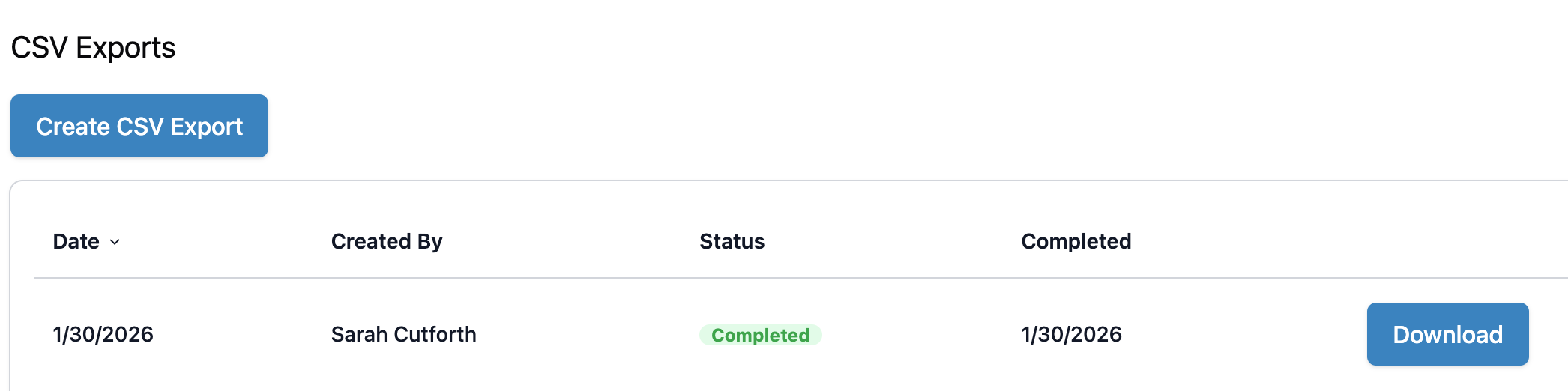 - Click Create CSV Export