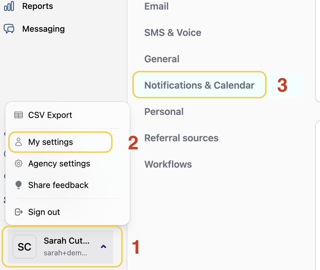 1) Go to the Notifications & Calendar Setting