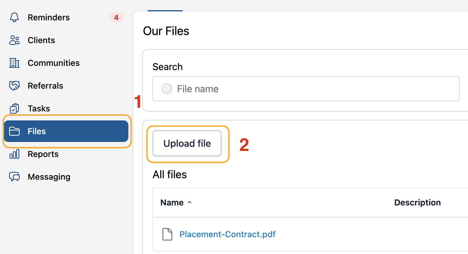 1. Navigate to the Files tab of the relevant Client or Community (in this screenshot, we're looking at a client profile)