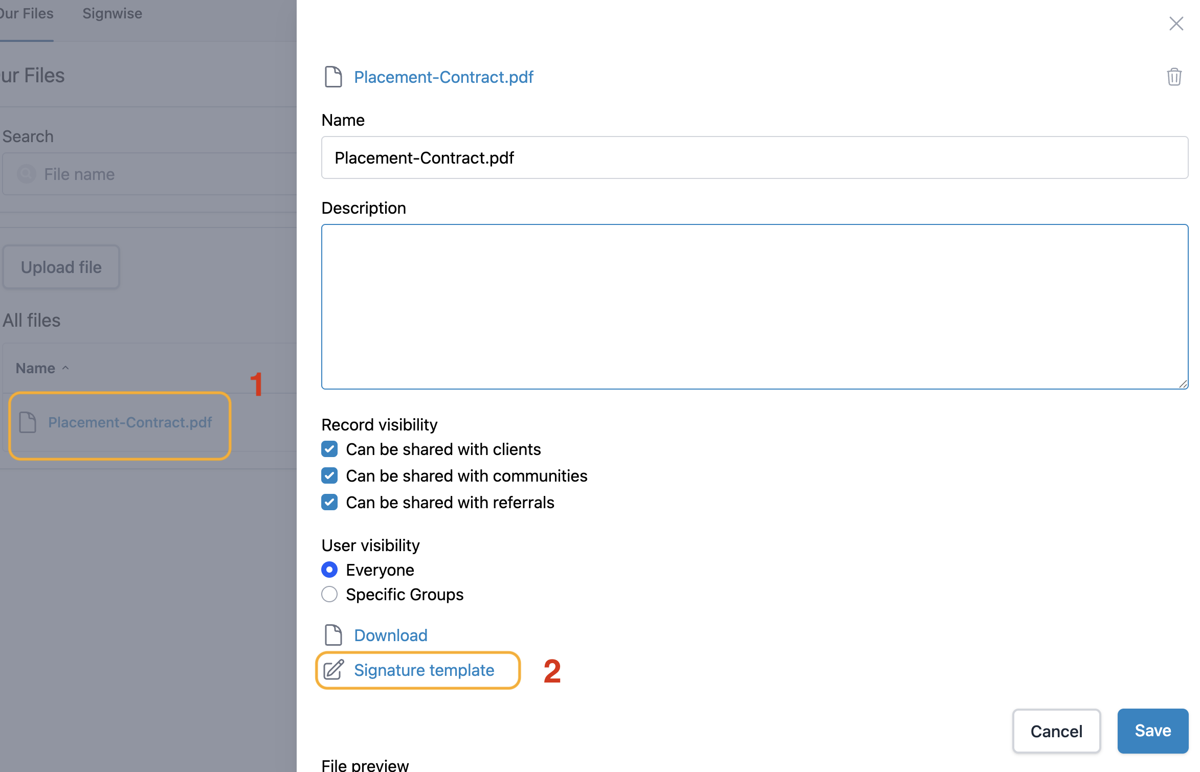 Note: Your file needs to be a PDF document or it will not be usable as a SignWise template.