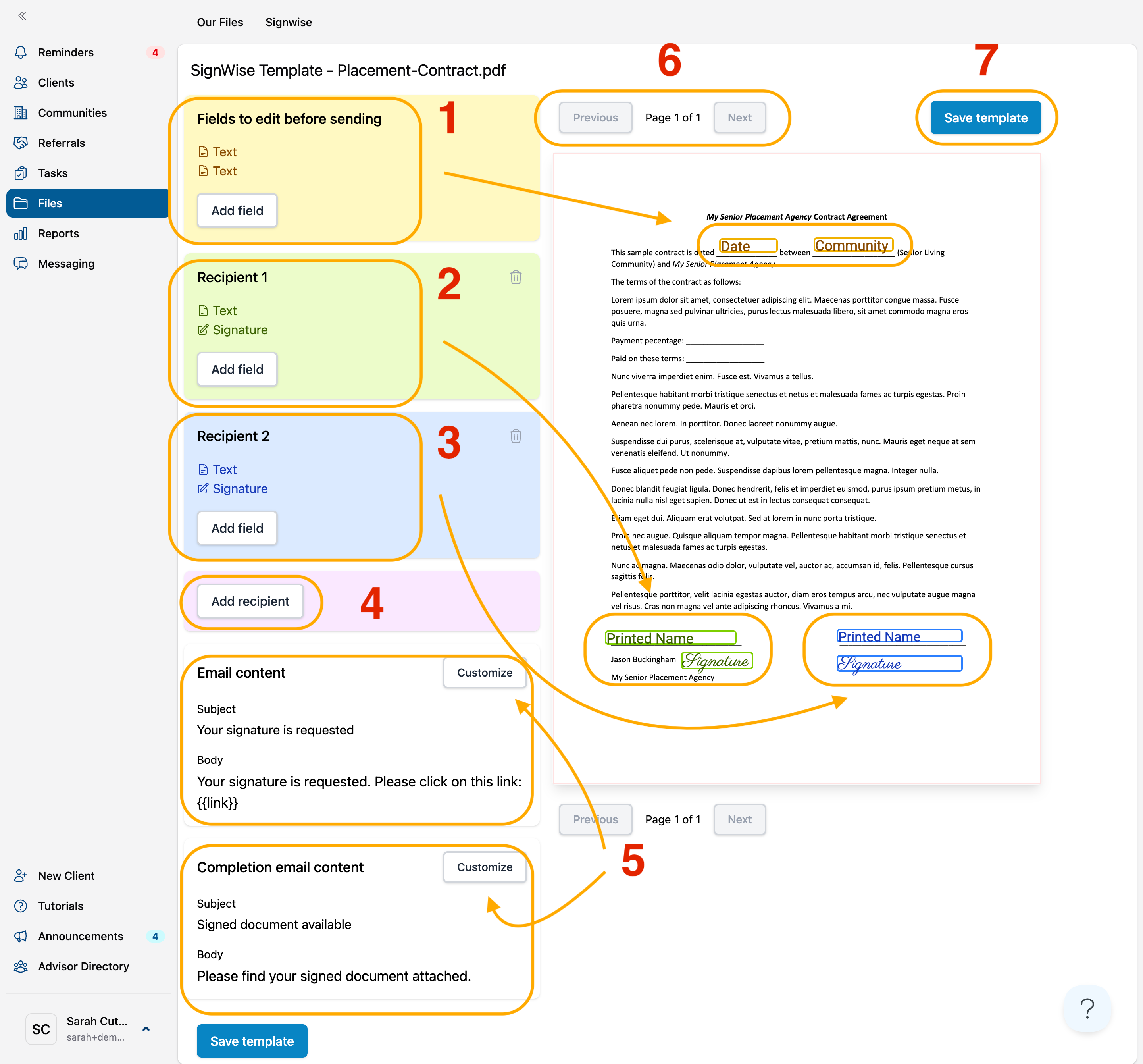 5. Once complete, click Save Template. Note: You can always edit SignWise templates again if needed.