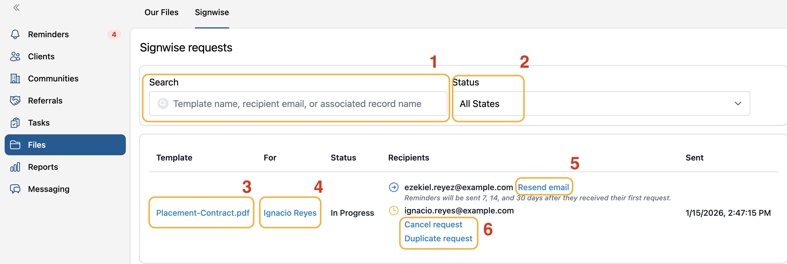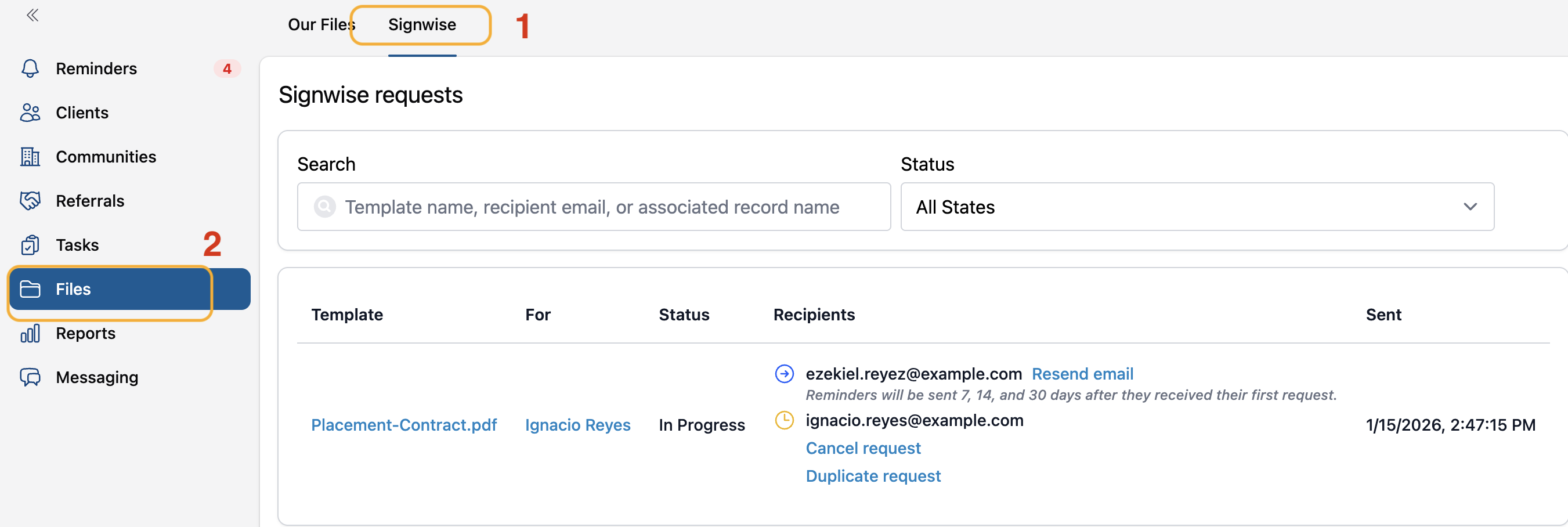 Whether you need your client to sign an agreement or a community to sign a contract, we've got you covered with SignWise. This article will walk you through how to create and send a SignWise request directly from Senior Place, as well as show you how to view and monitor your requests: