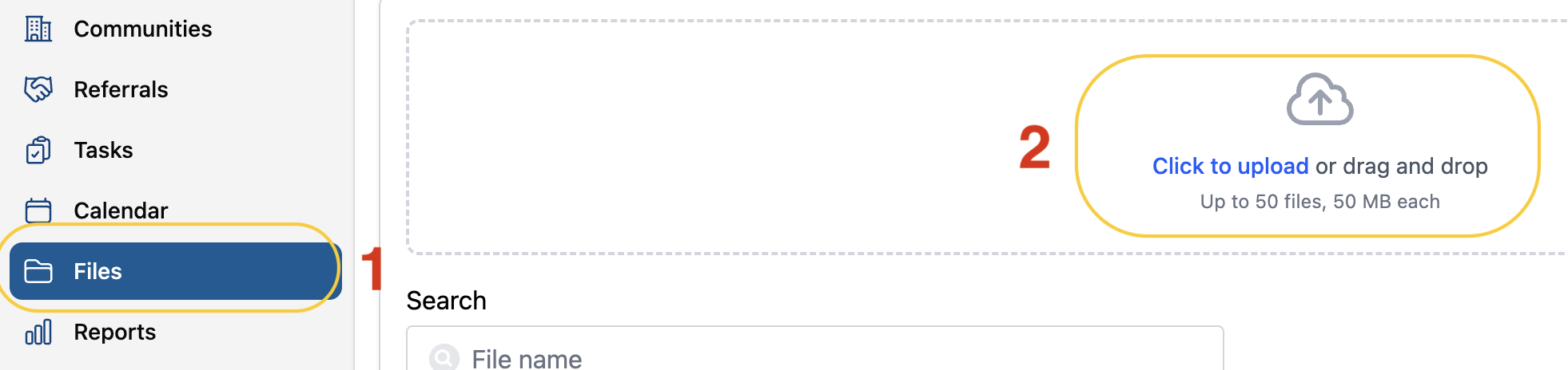 1. Navigate to the Files tab of the relevant Client, Community, or referral source