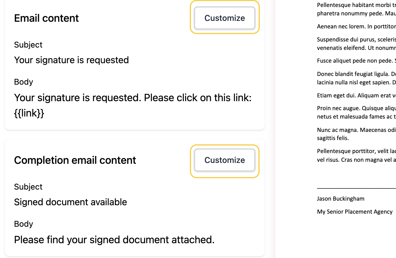 Customize the Signature Request and Completion Emails