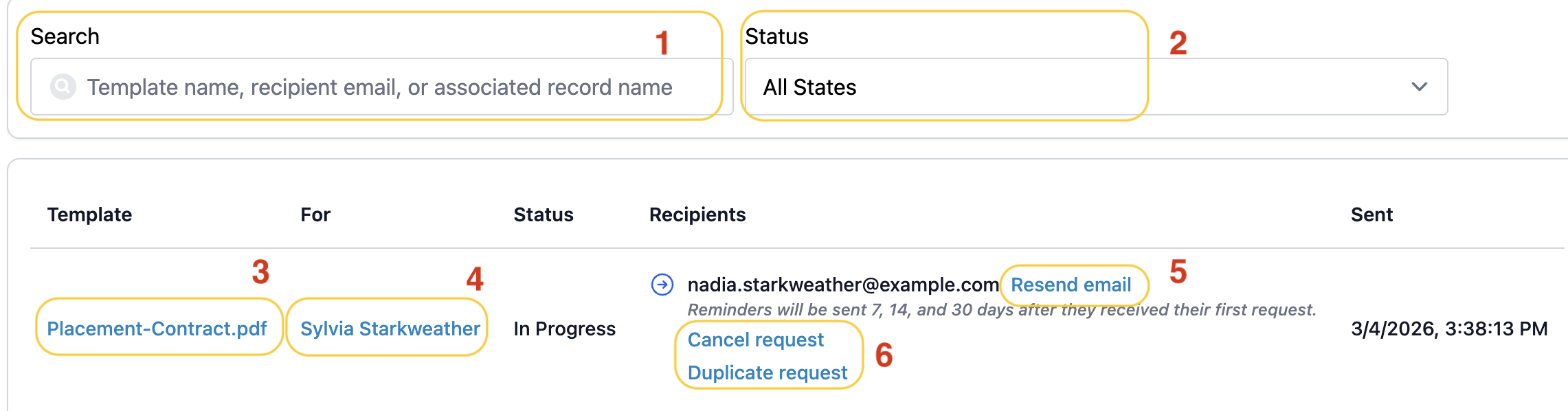1. Search by template name, recipient email, or associated record name