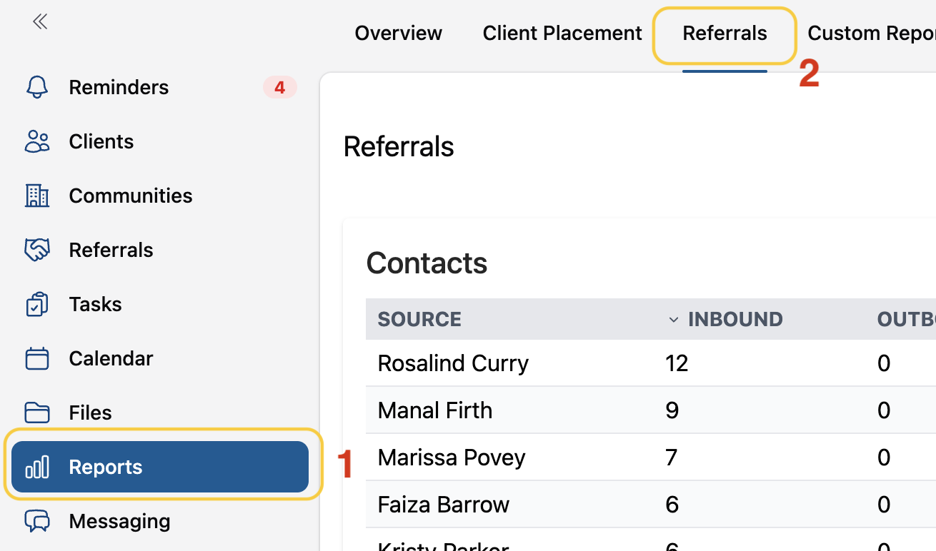 1) 2) Navigate to the Referrals tab