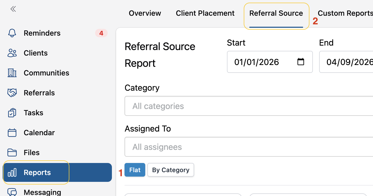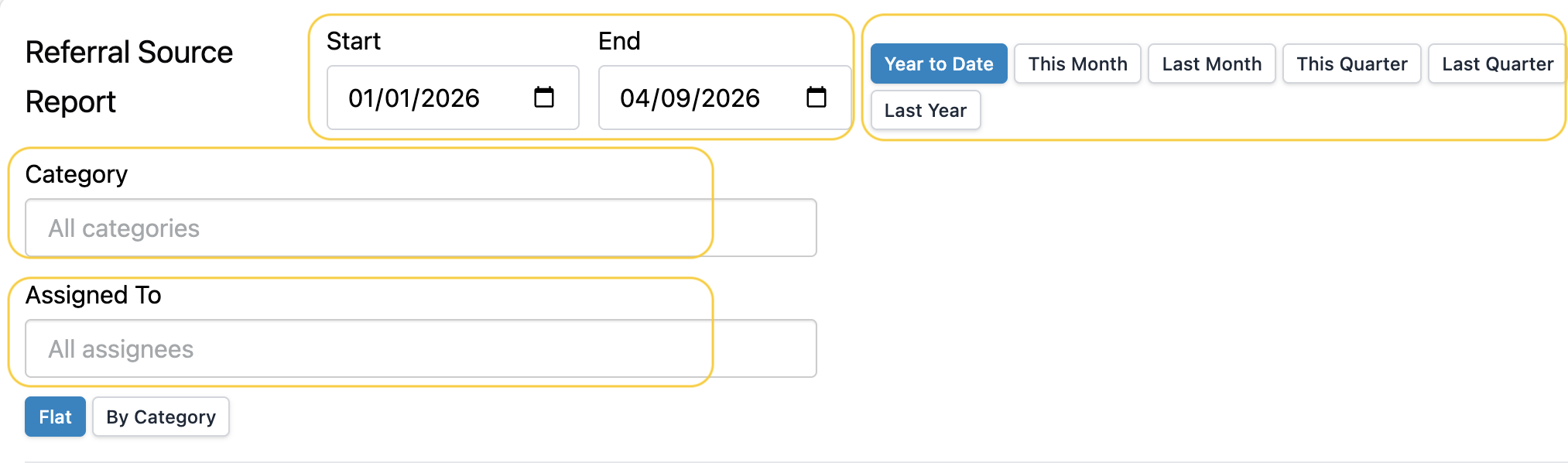 - By default, the data displayed is for the current year to date. If you'd prefer to view referrals for a different time period, you can adjust the Start and End dates or select a set date range.