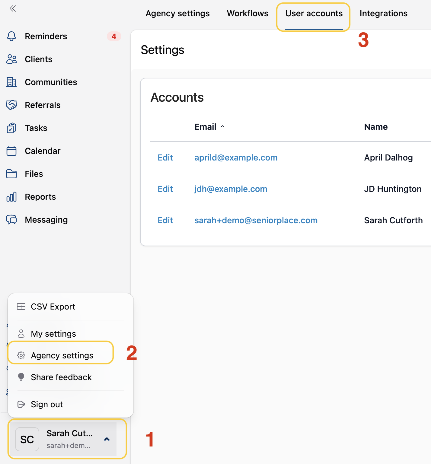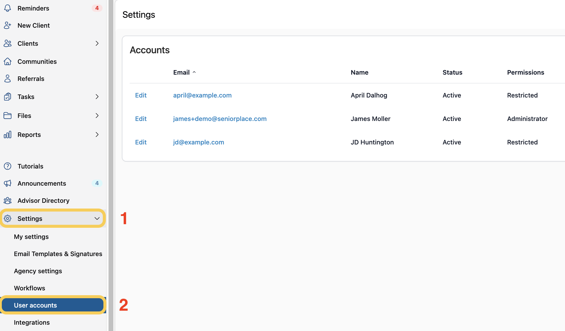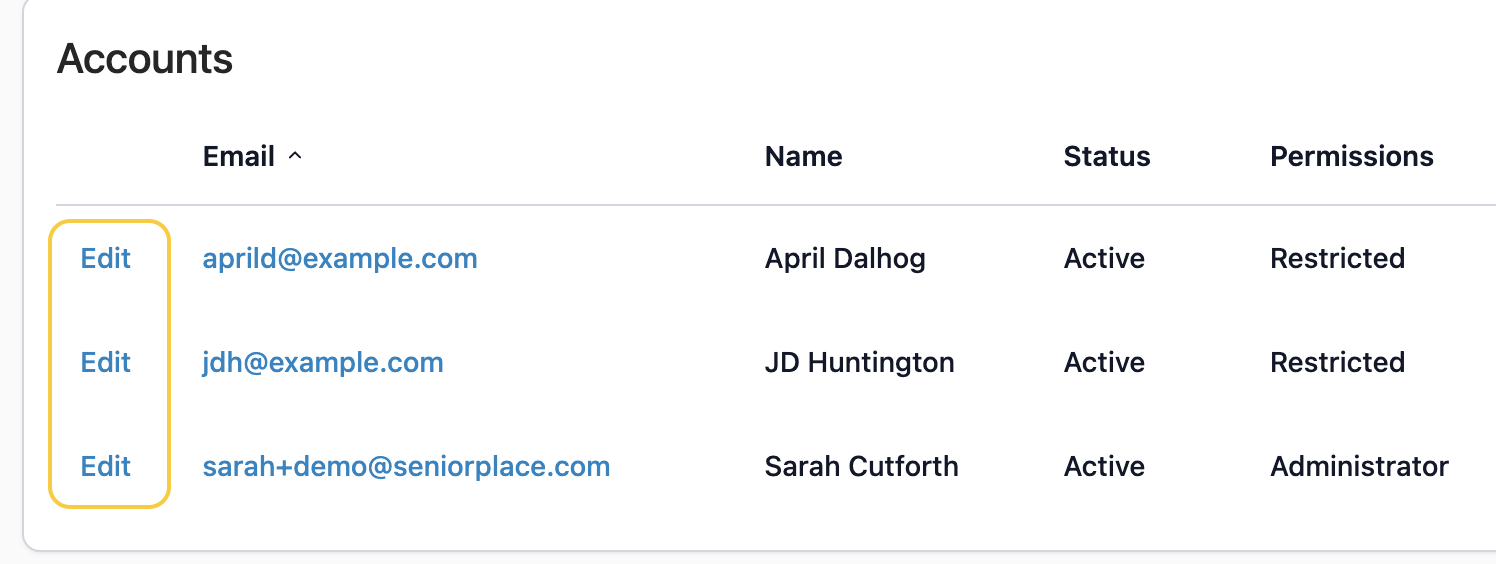 Note: Reactivating a user may affect your next Senior Place invoice.