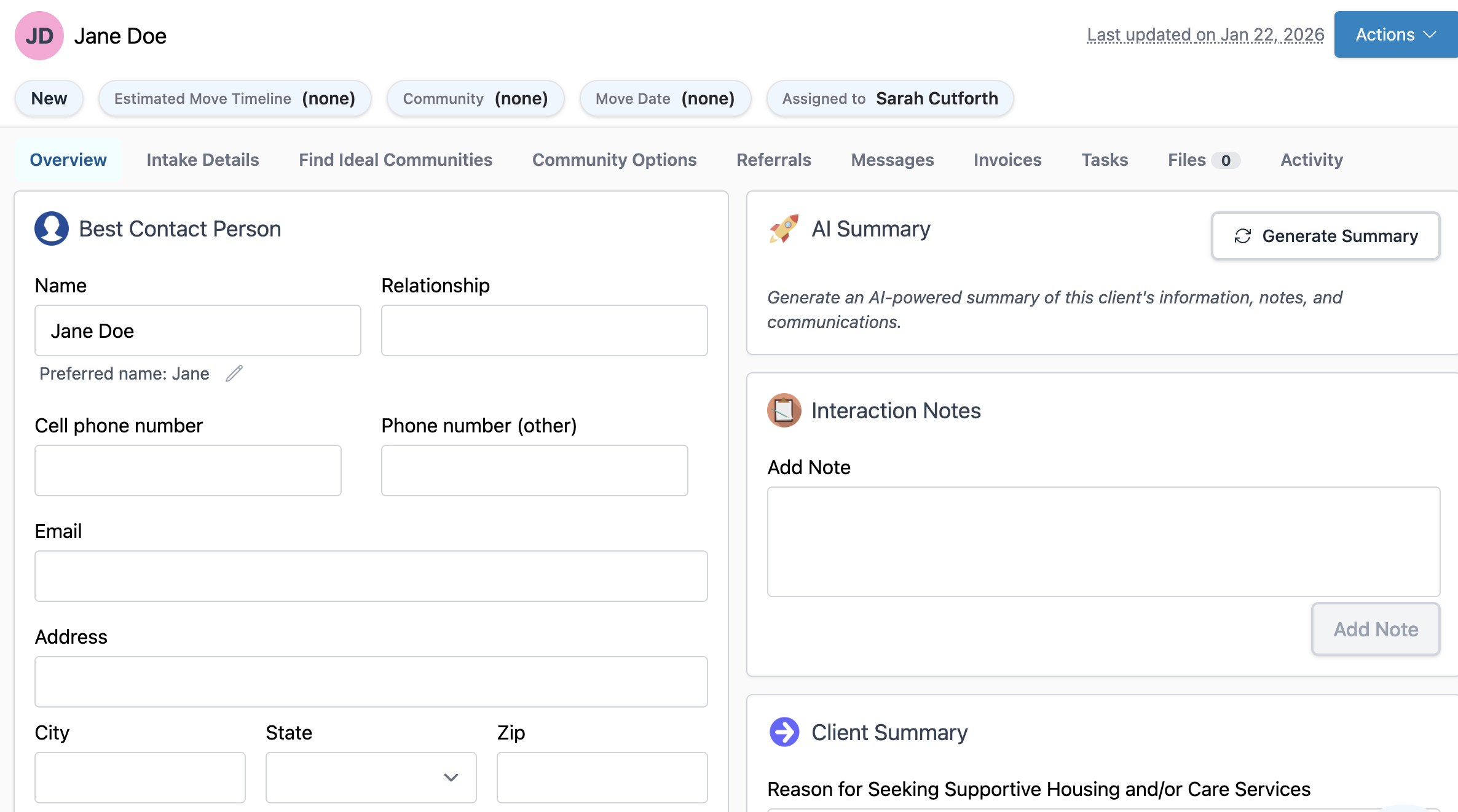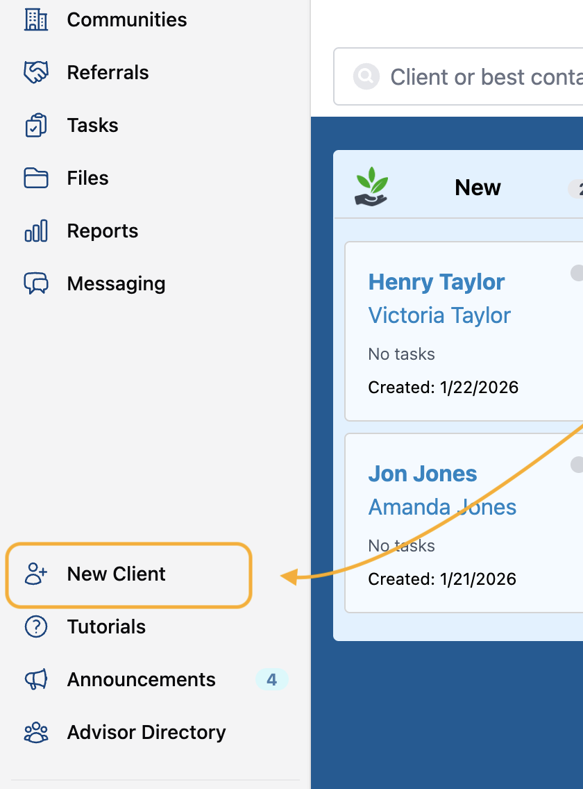 Follow these quick steps to add a new client to your Senior Place pipeline: