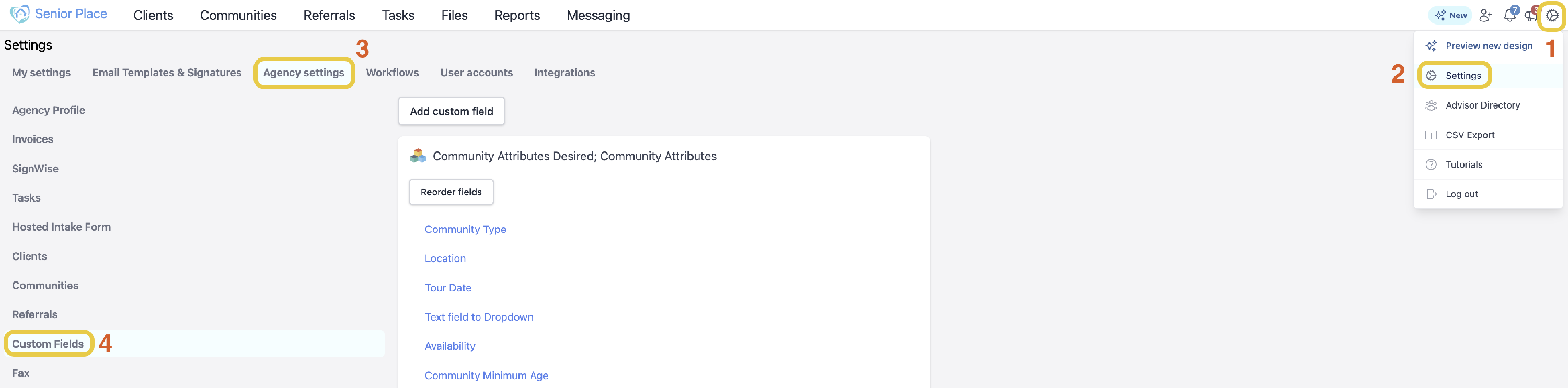 One powerful tool in Senior Place is the ability to edit individual fields for your Client profiles and Community attributes. The following areas are fully customizable: