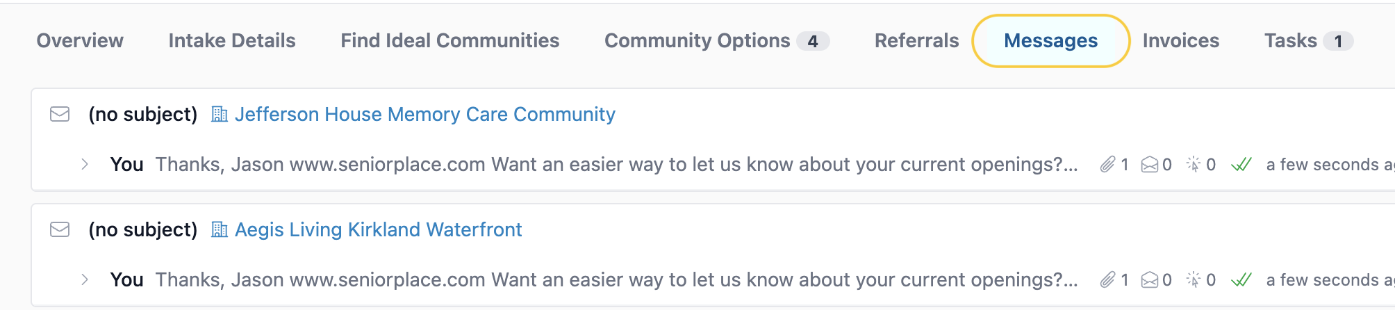 To view your sent referrals, navigate to the Messages tab of the relevant client.