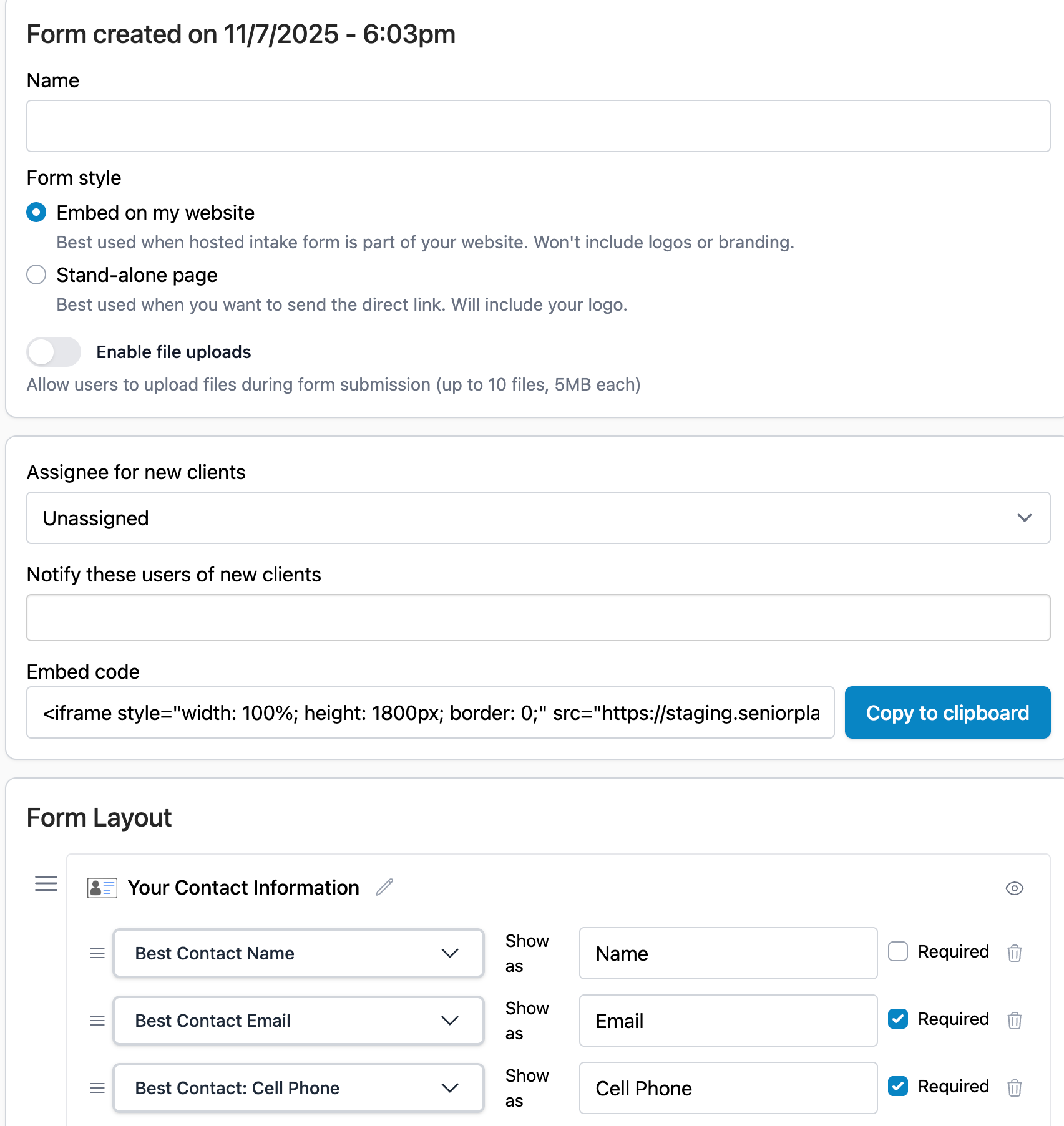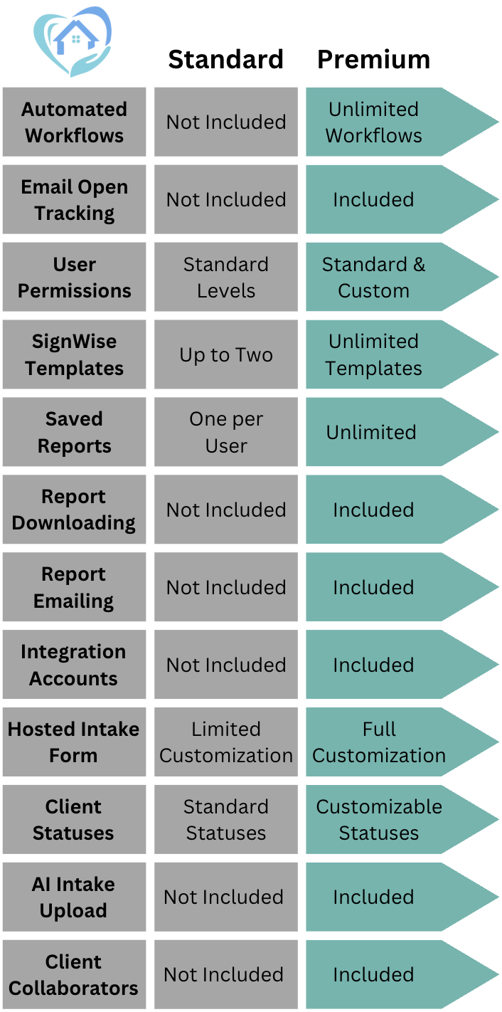 Senior Place's core package includes one Hosted Intake Form; however, on Premium, you get access to unlimited forms and unlimited customization of those forms. Additionally, you can use those forms to provide personal referral links to your referral sources and Client Update links to your client contacts.
