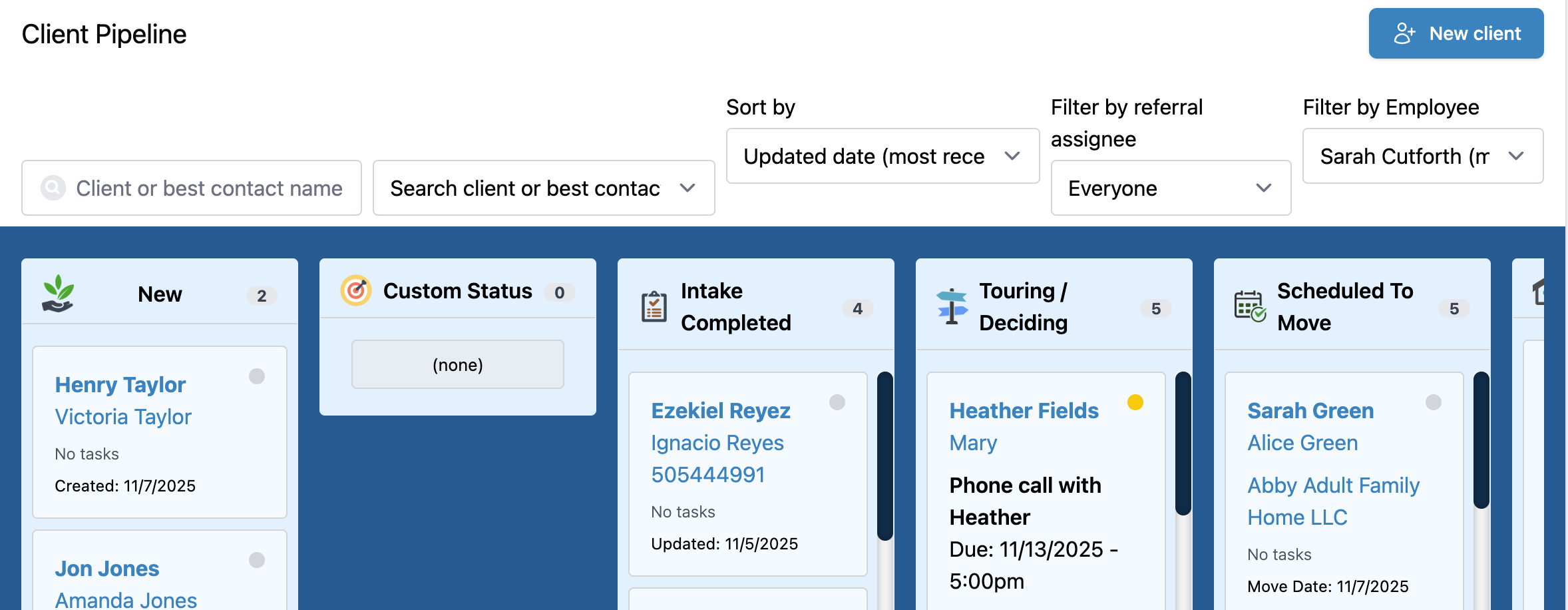 With Premium, you can customize Client Statuses to fit the exact wording, order, and situations your agency has. In the image above, you can see the Custom Status we added after New.