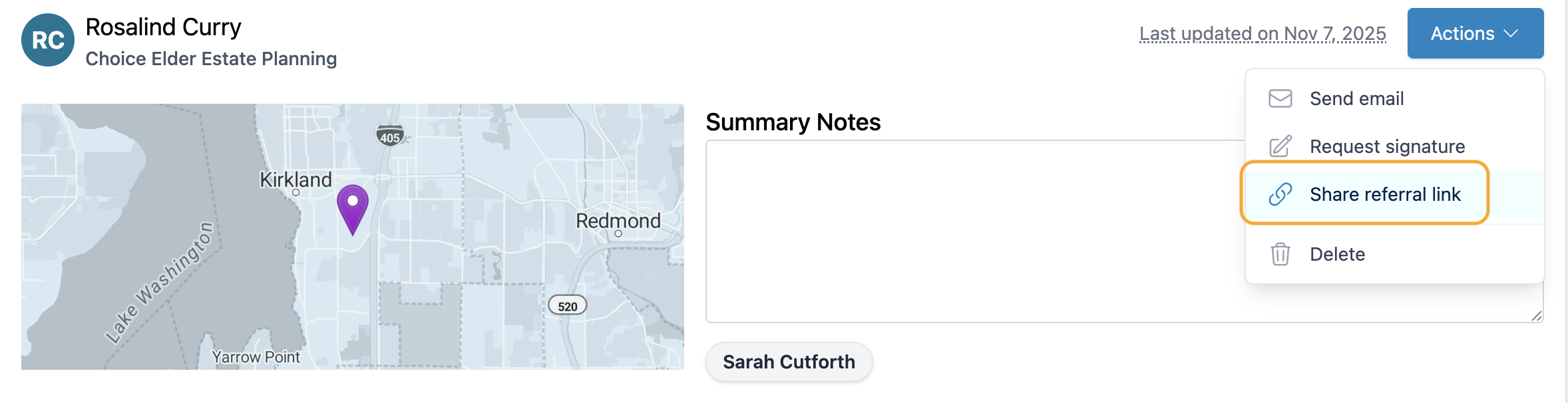 Using a referral link, your referral sources are able to submit new clients, which will be automatically be created for you in Senior Place with the contact/organization added as the referral source.
