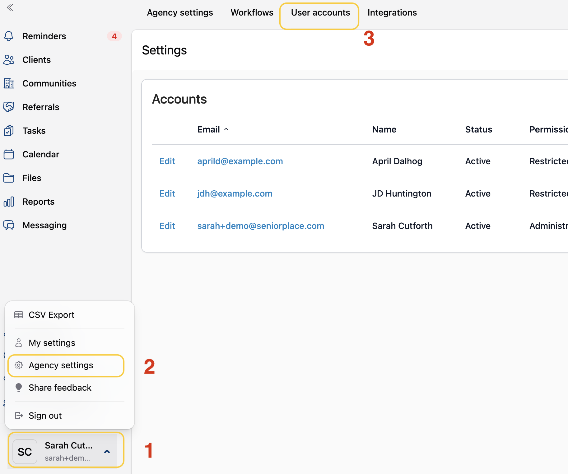If you find yourself reviewing Senior Place's permission levels, and decide to change a teammate's permission level, you can do so by following these steps: