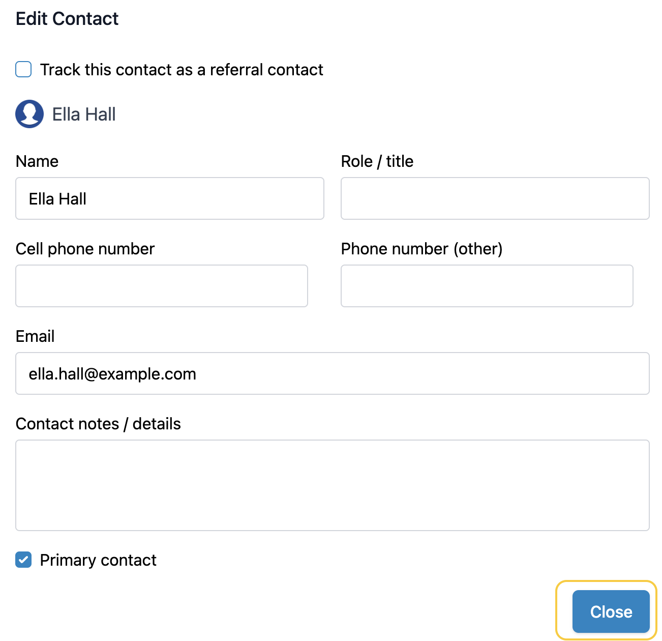 Note: If you've added this contact as a referral source for any clients, it will remove that association when you uncheck this box and save.