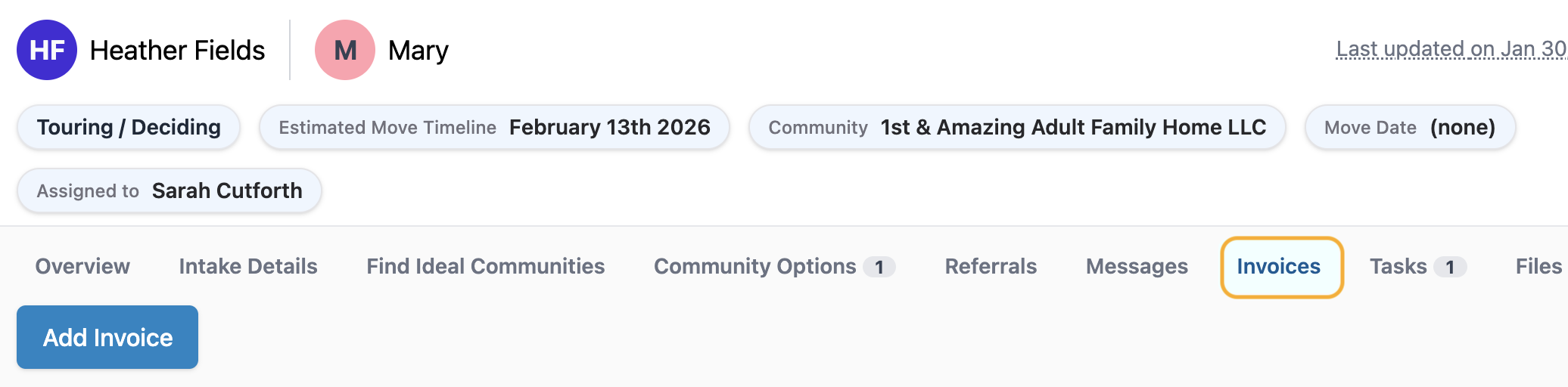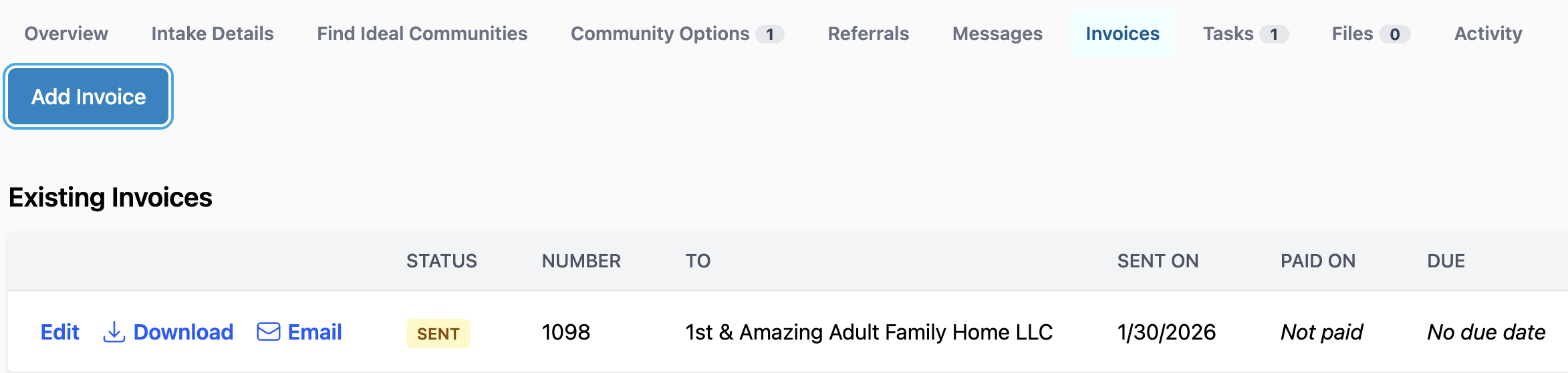 Whether you want to email your invoices directly from Senior Place or simply want to log the invoice information, you can do so in a few short steps: