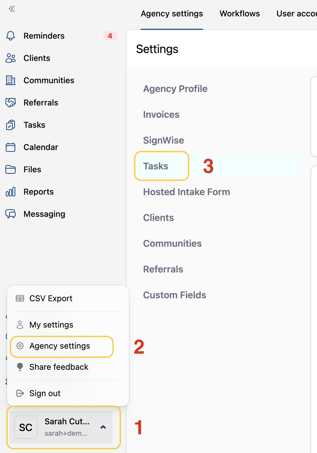 Every placement agency uses unique terminology when it comes to processes and tasks. That's why we've given you the ability to create, archive, and edit task types. You can customize task types by taking these steps: