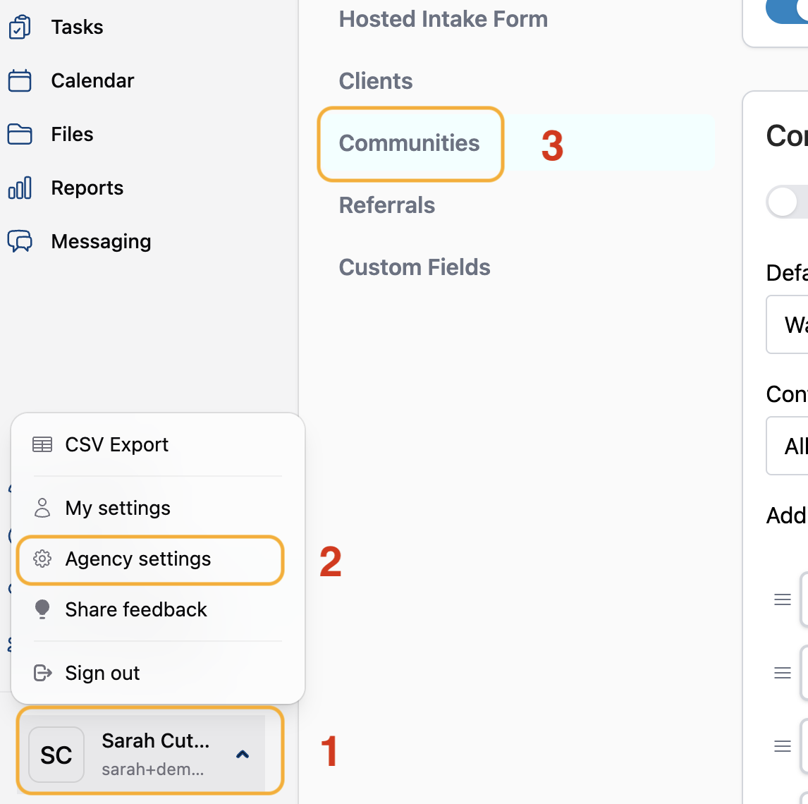 1) Navigate to the Communities Agency Setting