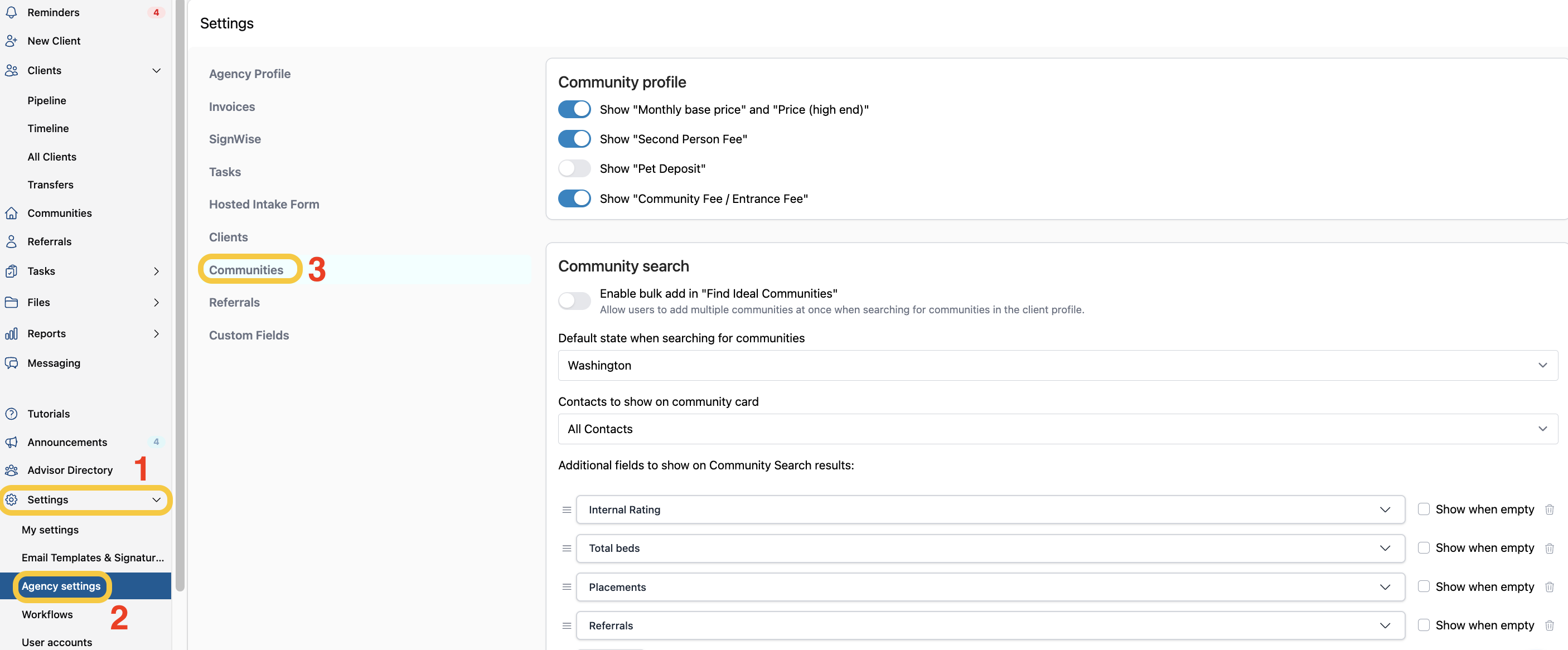 When searching for communities in the Communities module and Find Ideal Communities tab, you may find that you want to show additional information on your Community Cards. Community Cards, as can be seen below, show high-level information that may be important when browsing communities.