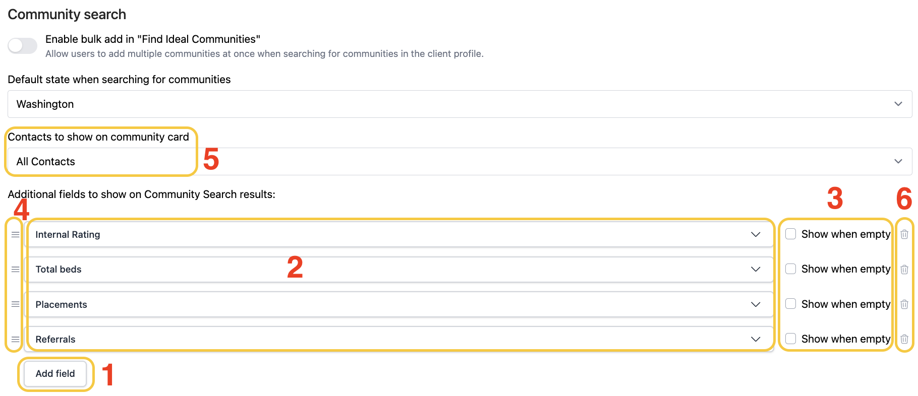 - Check the Show when empty box to show the field even when not entered in the community profile